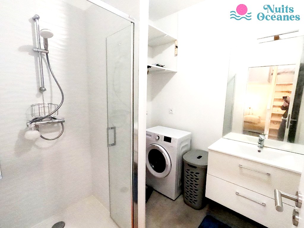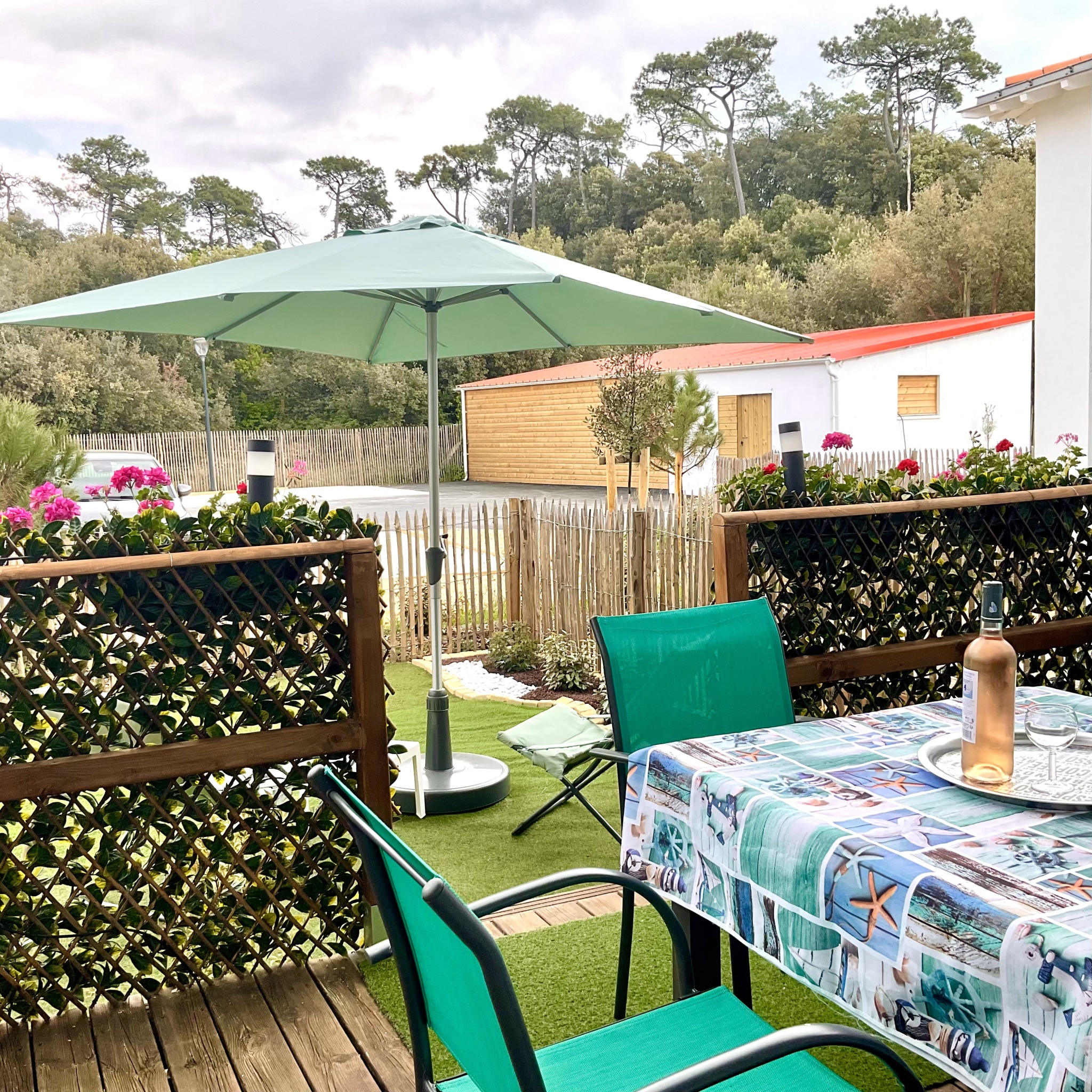 L'appartement des géraniumsAppartement en rez de jardin dans une résidence récente avec piscine chauffée( Juillet/Août ). Cour clôturée, belle terrasse et jardin de sable idéal pour les couples avec enfants. Le logement est composé d'un séjour avec cuisine équipée, une chambre cabine avec 1 lit de 140, une mezzanine avec 1 lit gigogne soit 2 lits simples, une salle d’eau / wc, une terrasse avec plancha, jardin avec transats et une place de parking, le tout pouvant accueillir 4 personnes maximum - plage à 1500m et commerces à 2000m, pain à 1500m - Petit marché le dimanche matin l'été dans le village de la Terrière à 1500 m. Linge de maison et ménage de départ non compris. Possibilité d'y souscrire en option. Electricité en supplément d'octobre à mars . Chèques vacances acceptés. Plan Prévision Risque Littoral : Zone Blanche