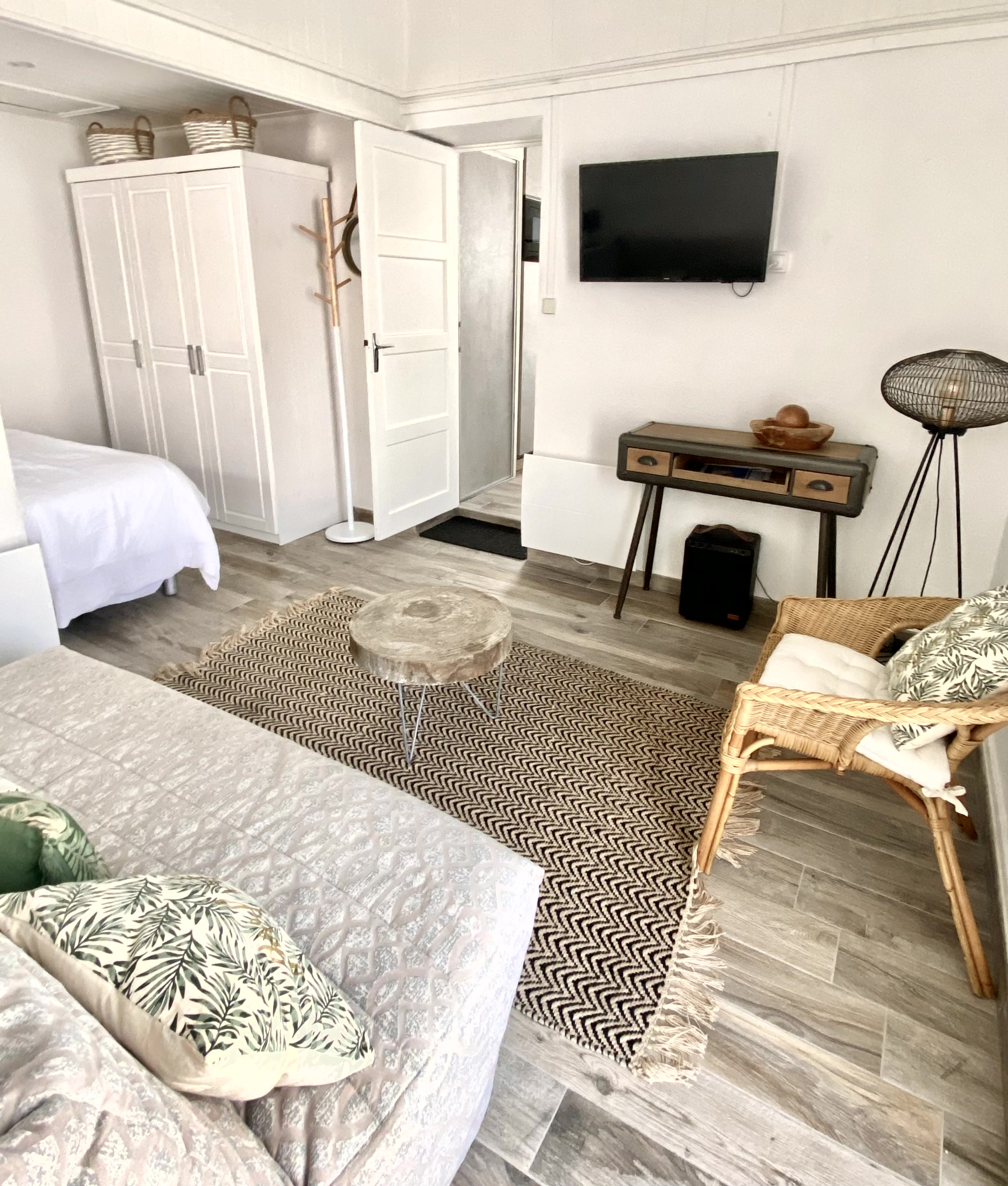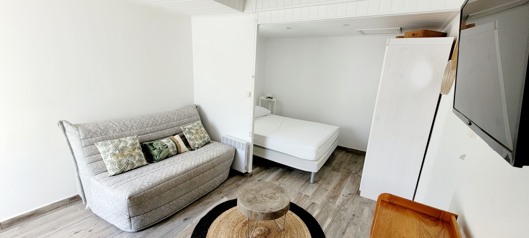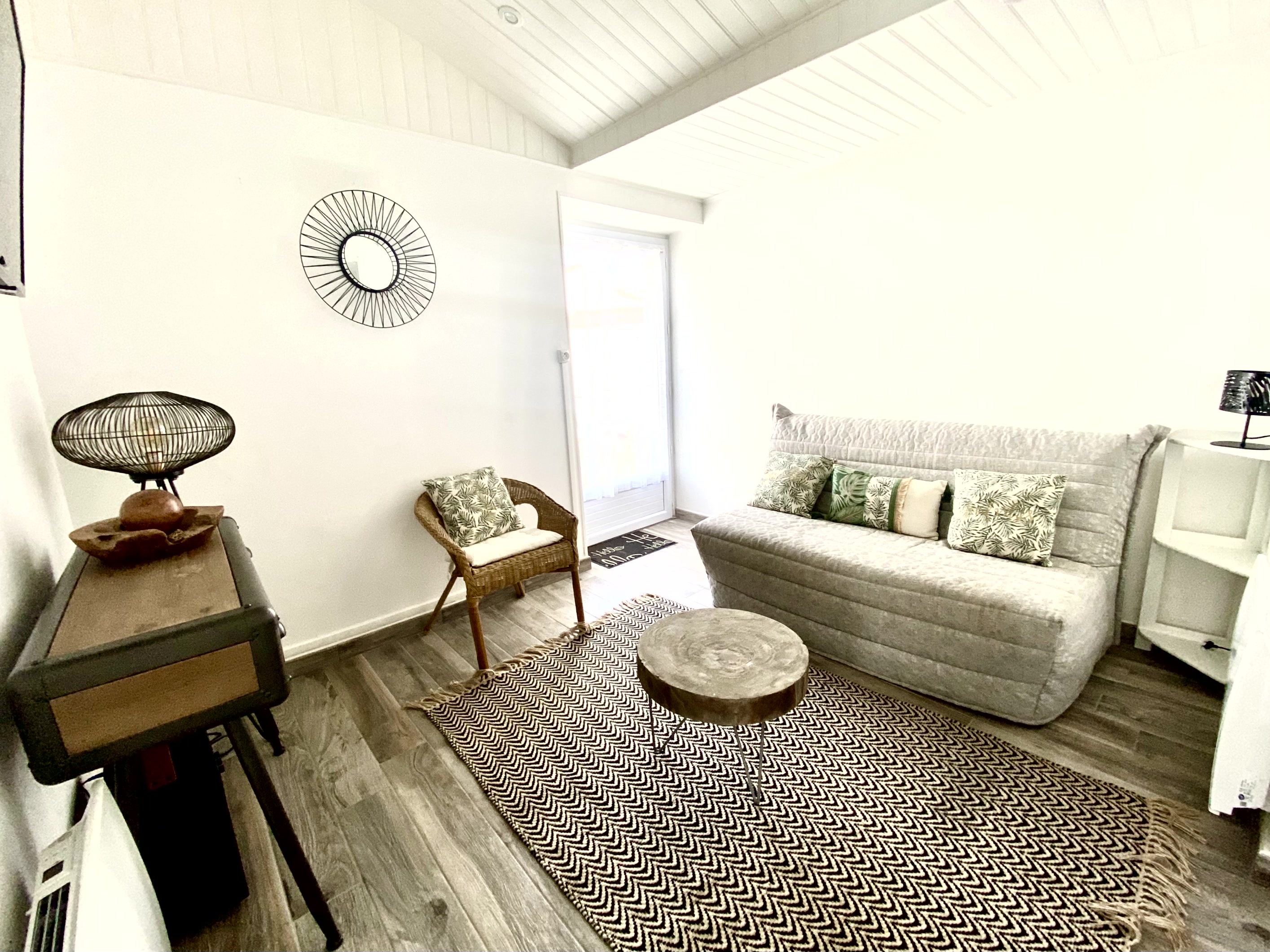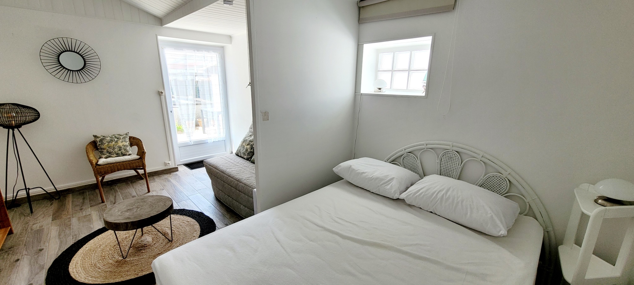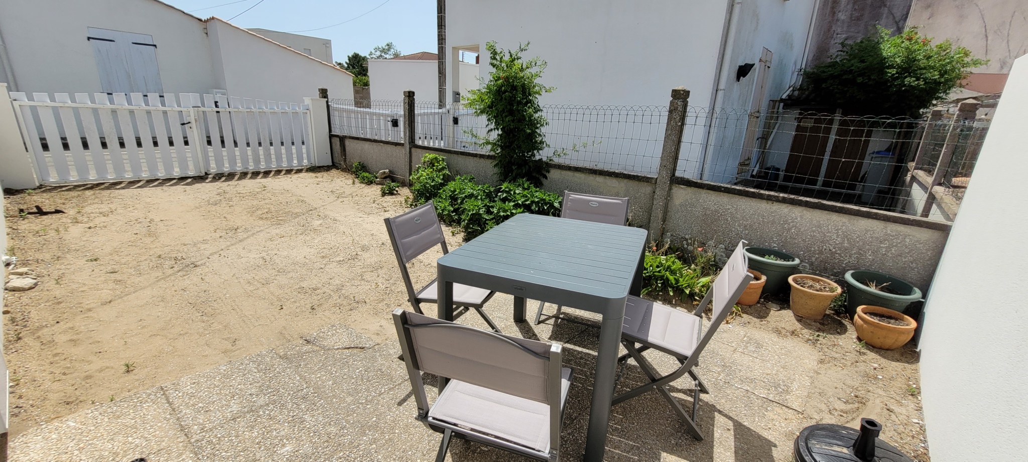 Petite maison individuelle rénovée mitoyenne avec cour de sable clôturée idéal pour tout faire à pied, Rue du fonds martin, La Tranche sur Mer - Plage à 100 m, Commerces à 300 m. Une cuisine (réfrigérateur, micro-ondes, plaques induction, lave-vaisselle, four électrique, téléviseur) 1 chambre/salon (canapé BZ) et chambre cabine (1 lit 140), salle d'eau ( douche, lavabo et W.C, lave-linge), salon de jardin, parking dans la cour - cour de sable avec salon de jardin. Linge de maison et ménage de départ non compris. Possibilité d'y souscrire en option. Chèques vacances acceptés. Plan Prévision Risque Littoral : Zone Blanche