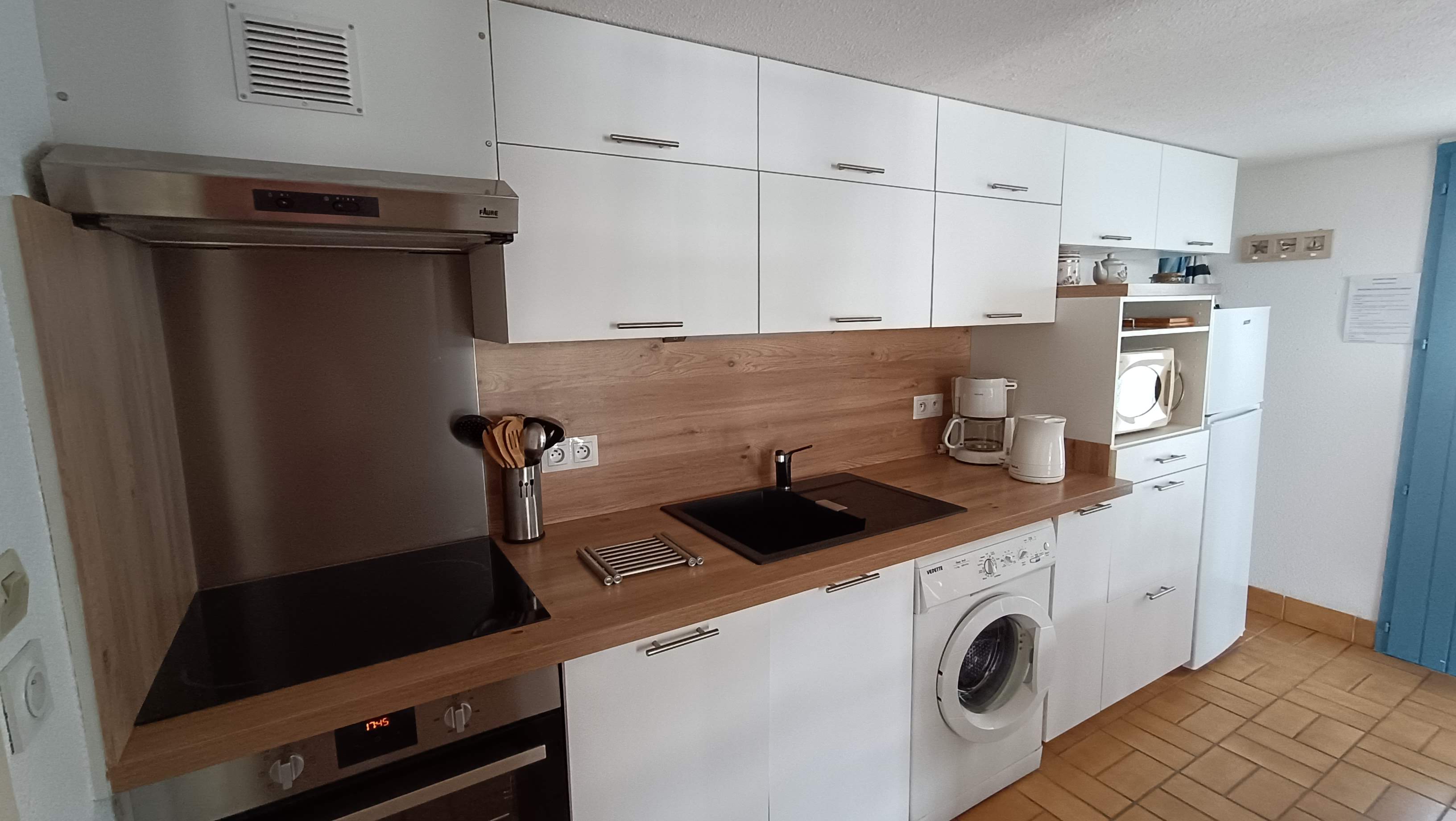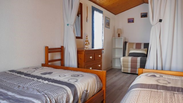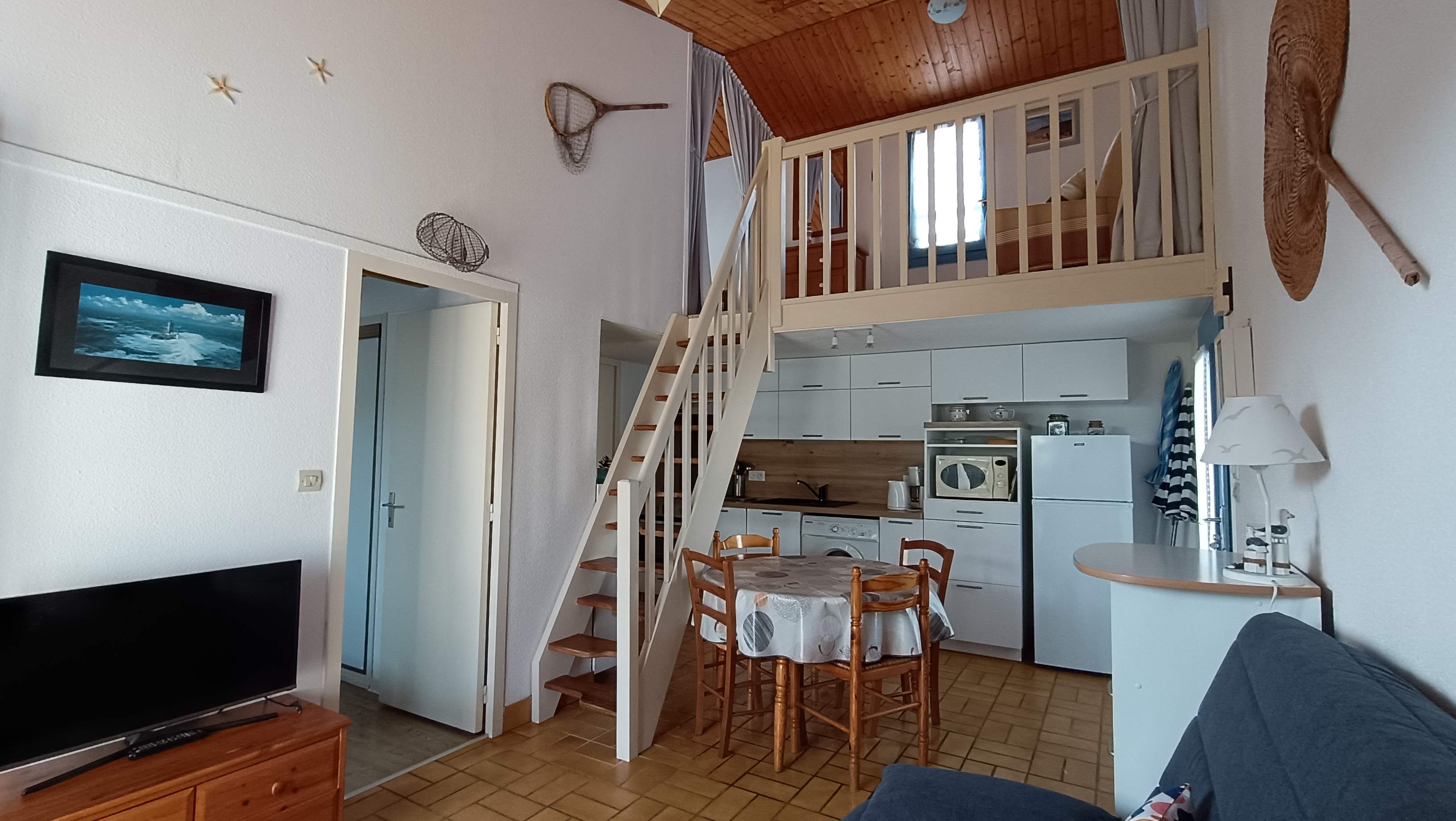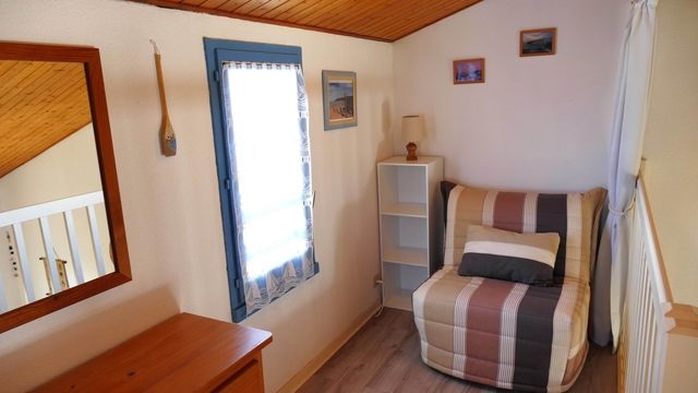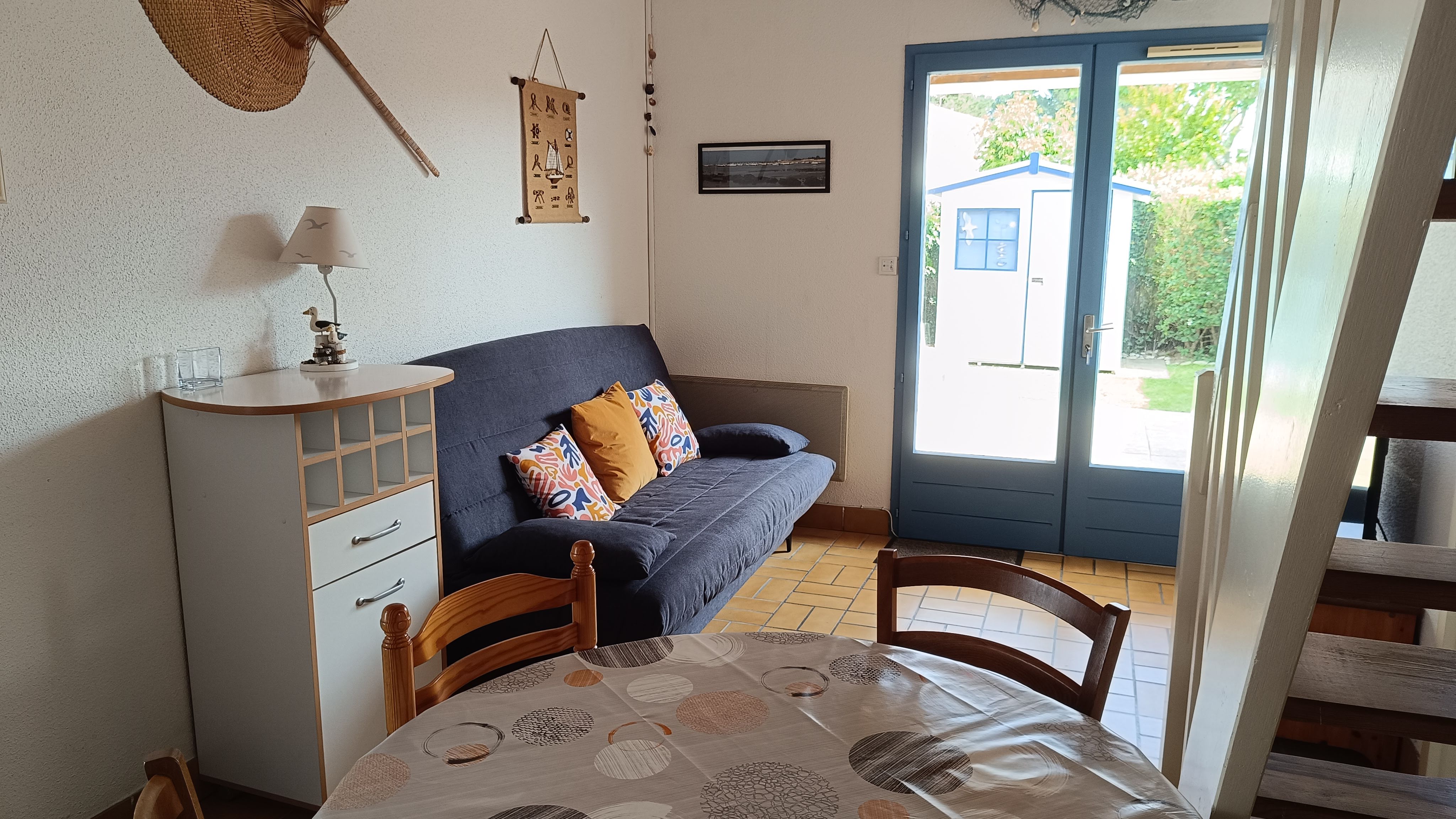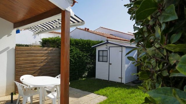 Petite maison individuelle mitoyenne avec jardin clôturé dans résidence de vacances, Domaine du pré de la cure, La Tranche sur Mer - Plage à 500 m, Commerces à 600 m. séjour avec téléviseur, coin cuisine (réfrigérateur/congélateur, plaques cuisson induction et four électrique, lave vaisselle, lave linge, micro-ondes), 1 chambre (1 lit de 140), mezzanine sur séjour avec coin chambre (2 lits de 90), salle de bain (douche, lavabo), W.C séparés, terrasse et salon de jardin- parking privé. Linge de maison et ménage de départ non compris. Possibilité d'y souscrire en option. Chèques vacances acceptés. Plan Prévision Risque Littoral : Zone Blanche