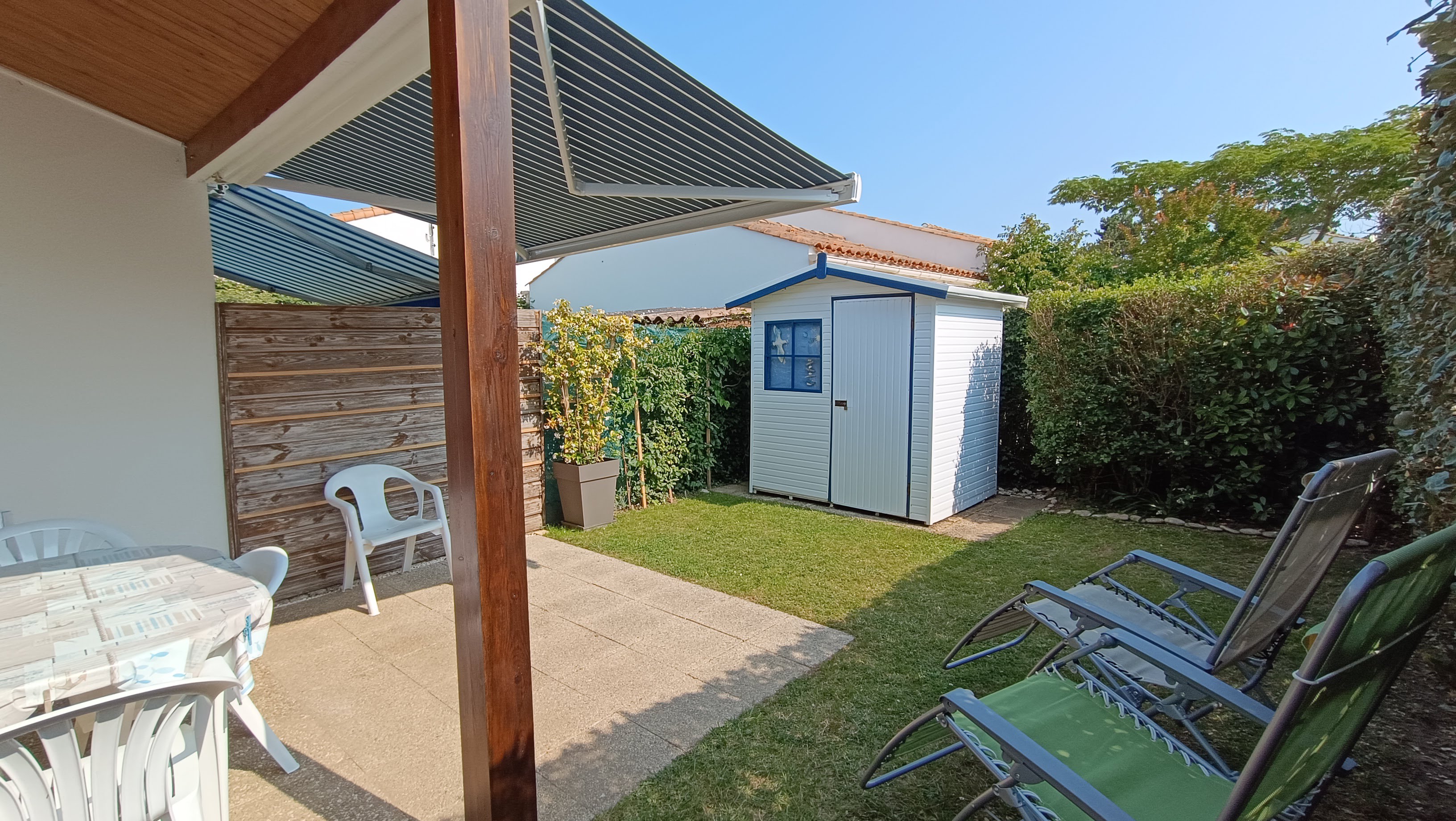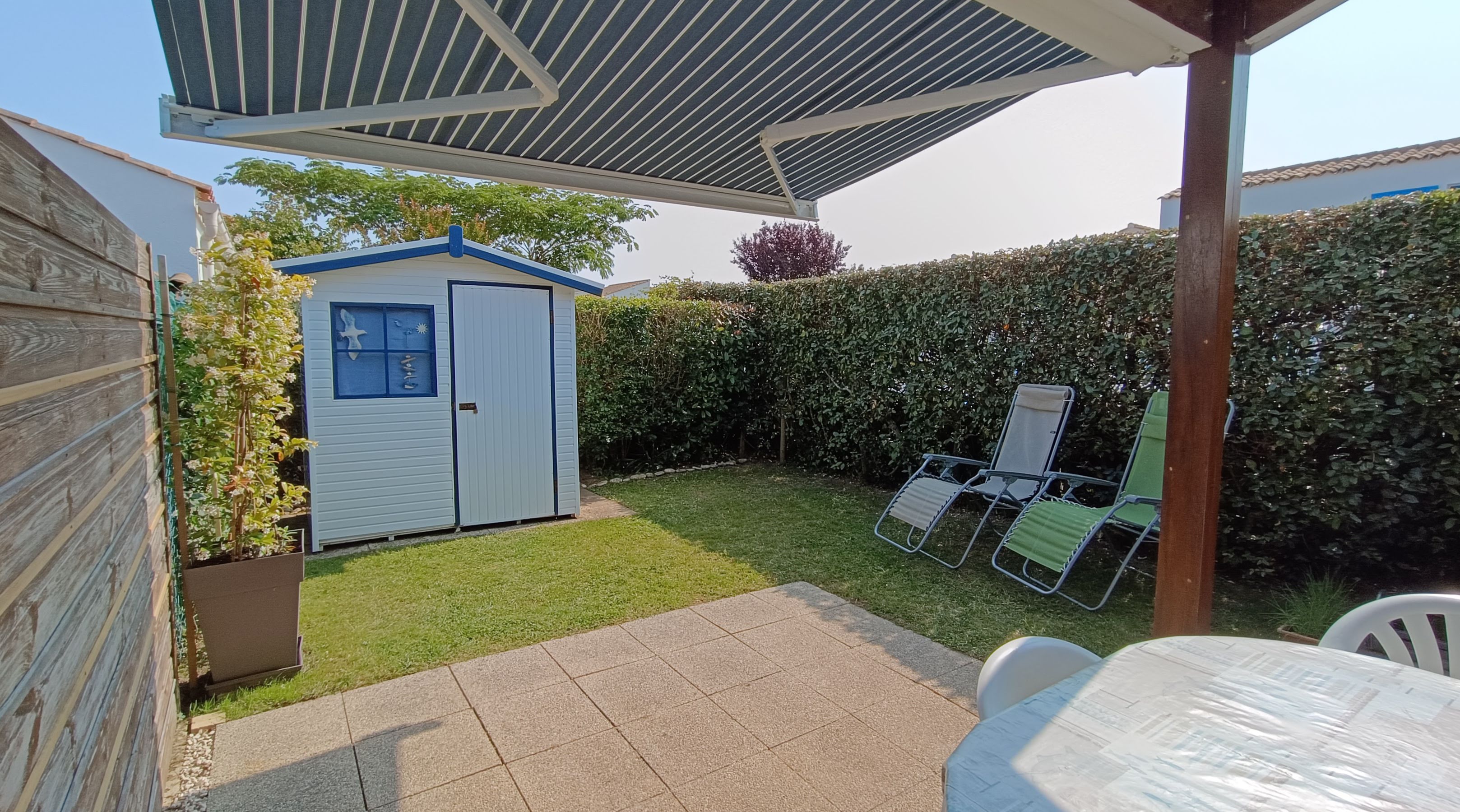 Petite maison individuelle mitoyenne avec jardin clôturé dans résidence de vacances