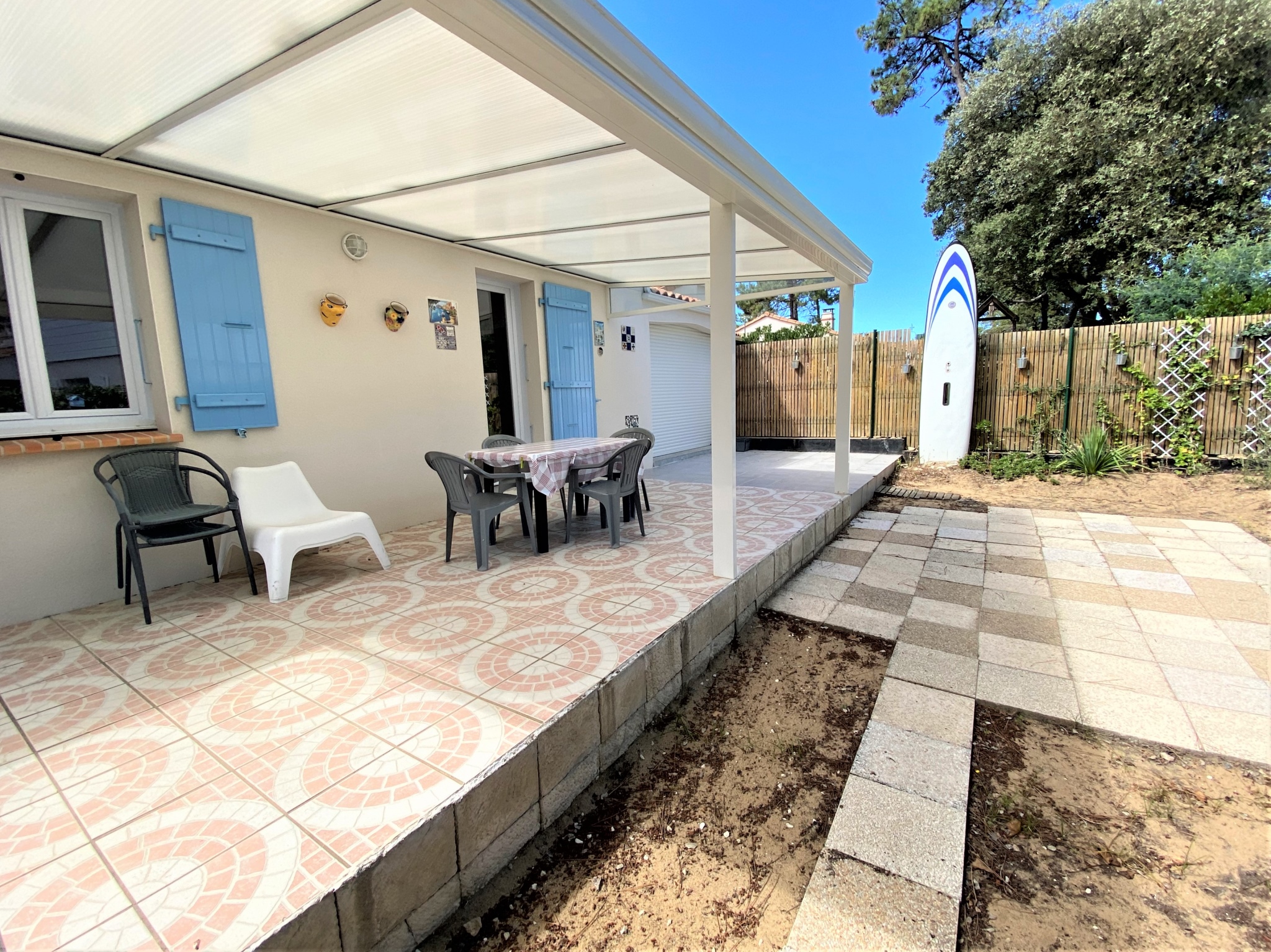 Maison individuelle confortable, quartier calme, proche plage et forêt, la Tranche sur Mer Plage à 500m, Commerces à 2000m séjour/salle à manger (TV et WIFI), coin cuisine équipé (plaque vitrocéramique, four électrique., micro-onde, réfrigérateur/congélateur, lave-linge, lave-vaisselle), une chambre avec 1 lit de 140, une chambre avec 2 lits de 90, une chambre avec 1 lit de 140, salle d'eau (douche cabine, lavabo), WC séparé, terrasse couverte par un auvent, jardin clos une place de parking privé, garage, barbecue, bain de soleil, salon de jardin, chèques vacances acceptés - animal nous contacter - Plan Prévention Risque Littoral : Zone Blanche