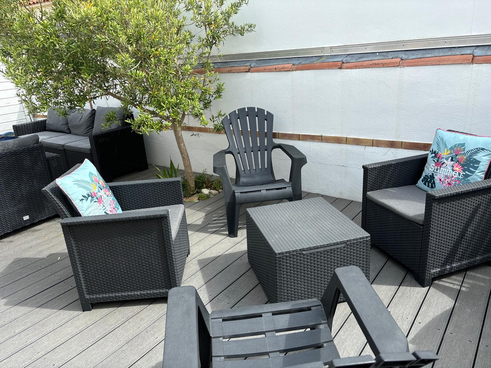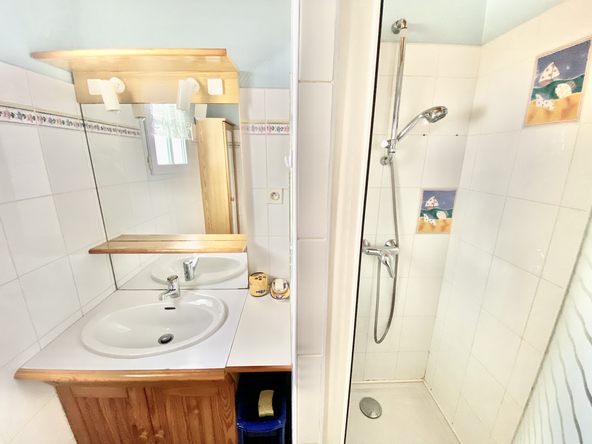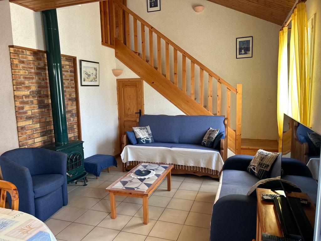 Maison indépendante plain pied bien entretenue, très belle terrasse au sud composée d'un séjour/salon (WIFI – TV et DVD) avec coin cuisine (plaques cuisson mixtes, four électrique, micro-onde, réfrigérateur, congélateur, lave-vaisselle) 1 chambre avec 1 lit 140, 1 chambre avec 2 lits superposés et 1 canapé BZ, salle d’eau (douche, lavabo), WC séparé , cellier/lingerie avec lave-linge et congélateur, A l’étage 1 chambre avec 1 lit 160. douche d’extérieur sur la terrasse, belle et grande terrasse avec store banne 2 emplacements voiture. Cabanon de jardin, barbecue, Plage à 450m, Commerces à 2000m - Linge de maison et ménage de départ non compris. Possibilité d'y souscrire en option. Chèques vacances acceptés. Plan Prévision Risque Littoral : Zone Blanche