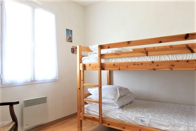 Maison indépendante confortable avec jardin clôturé – quartier calme composée d'un séjour coin cuisine équipé (réfrigérateur-congélateur, plaque cuisson gaz, mini four électrique, micro-onde) lave vaisselle et lave-linge dans le débarras – 2 Chambres avec chacune 1 Lit de 140, une chambre avec 2 lits superposés de 90, salle d’eau (douche, lavabo), W.C. indépendant, garage à vélos- terrasse avec salon de jardin – parking dans le jardin – Plage à 500 m, Commerces à 800 m - Linge de maison et ménage de départ non compris. Possibilité d'y souscrire en option. Chèques vacances acceptés. Plan Prévision Risque Littoral : Zone Bleue BO