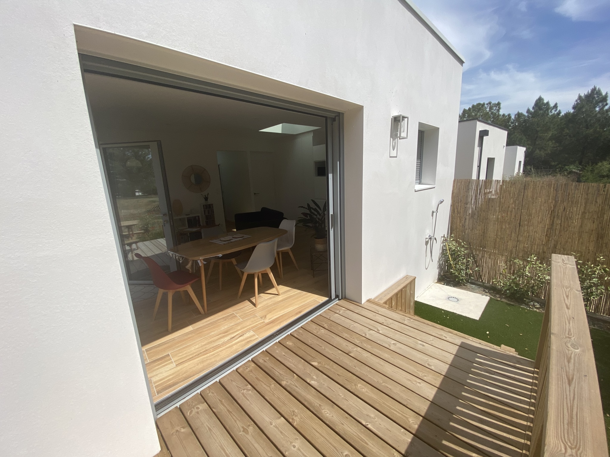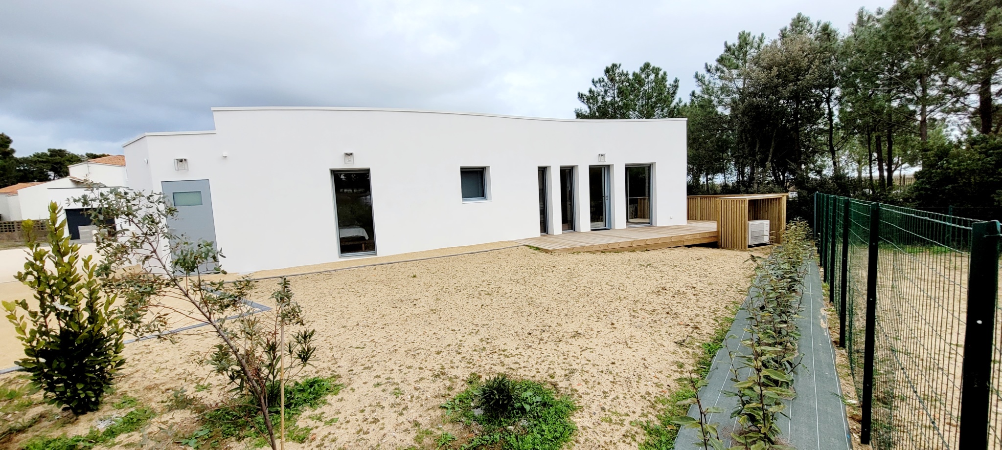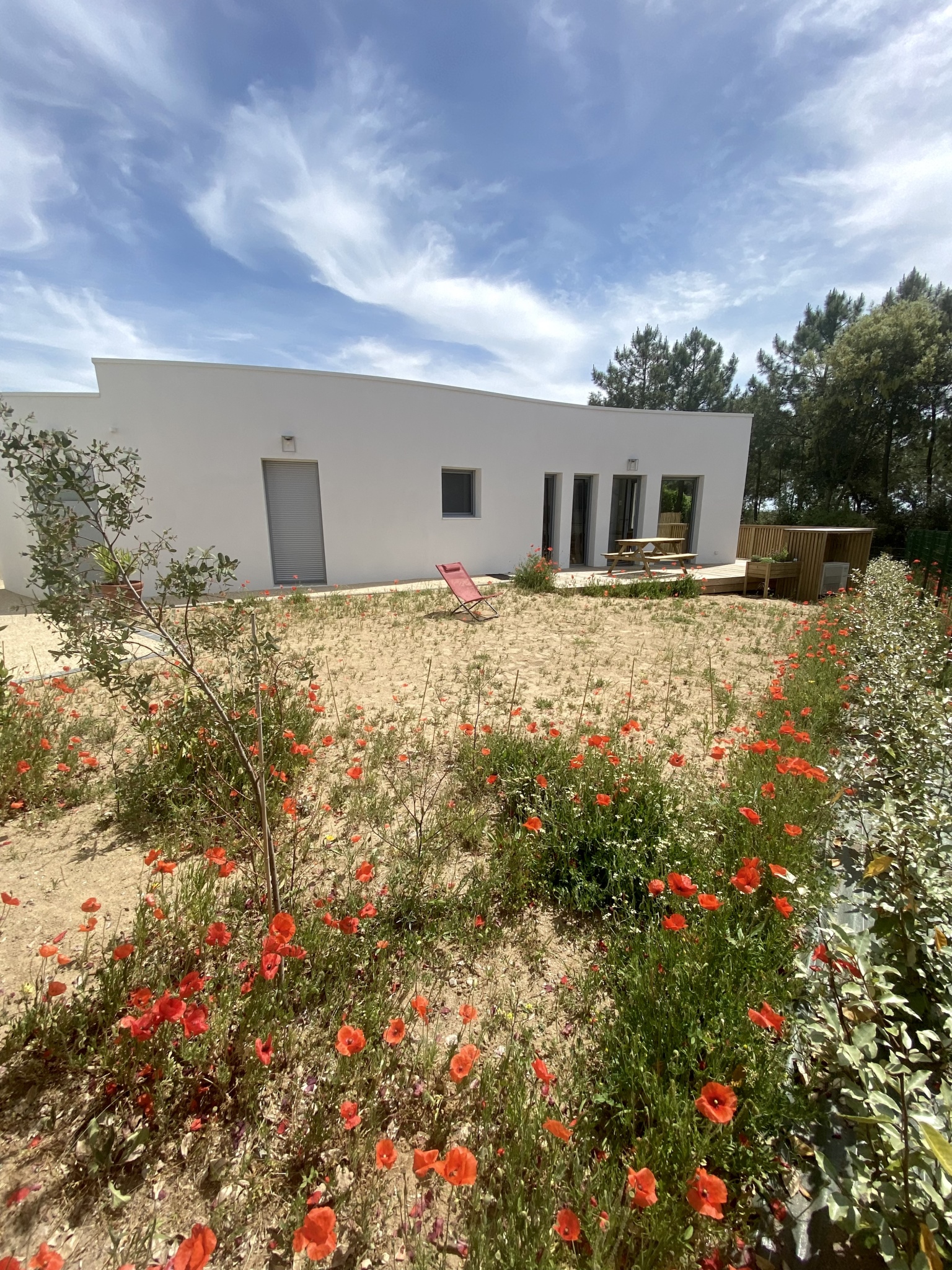Maison d'architecte de plain-pied avec son accès direct à la plage ! Très belle prestation, cette location est composée d'un séjour, d'une cuisine ouverte équipée ( plaque induction, réfrigérateur/congél, four, micro-onde, lave vaisselle), de 2 chambres avec lits en 160cm dont 1 modulables en lits simples, d'une salle de bain avec douche à l'italienne, lavabo et WC, d'un WC séparé, d'une terrasse avec mobilier d'extérieur et barbecue / plancha au gaz. Cour fermée, douche extérieure pour les retours de plage. débarras (lave-linge) pour les vélos et place de stationnement. Accès direct sur les pistes cyclables qui mènent au centre-ville. Linge de maison et ménage de départ non compris. Possibilité d'y souscrire en option. Prévoir consommation électrique en sus hors saison d'été. Chèques vacances acceptés. Plan Prévision Risque Littoral : Zone Bleue B1