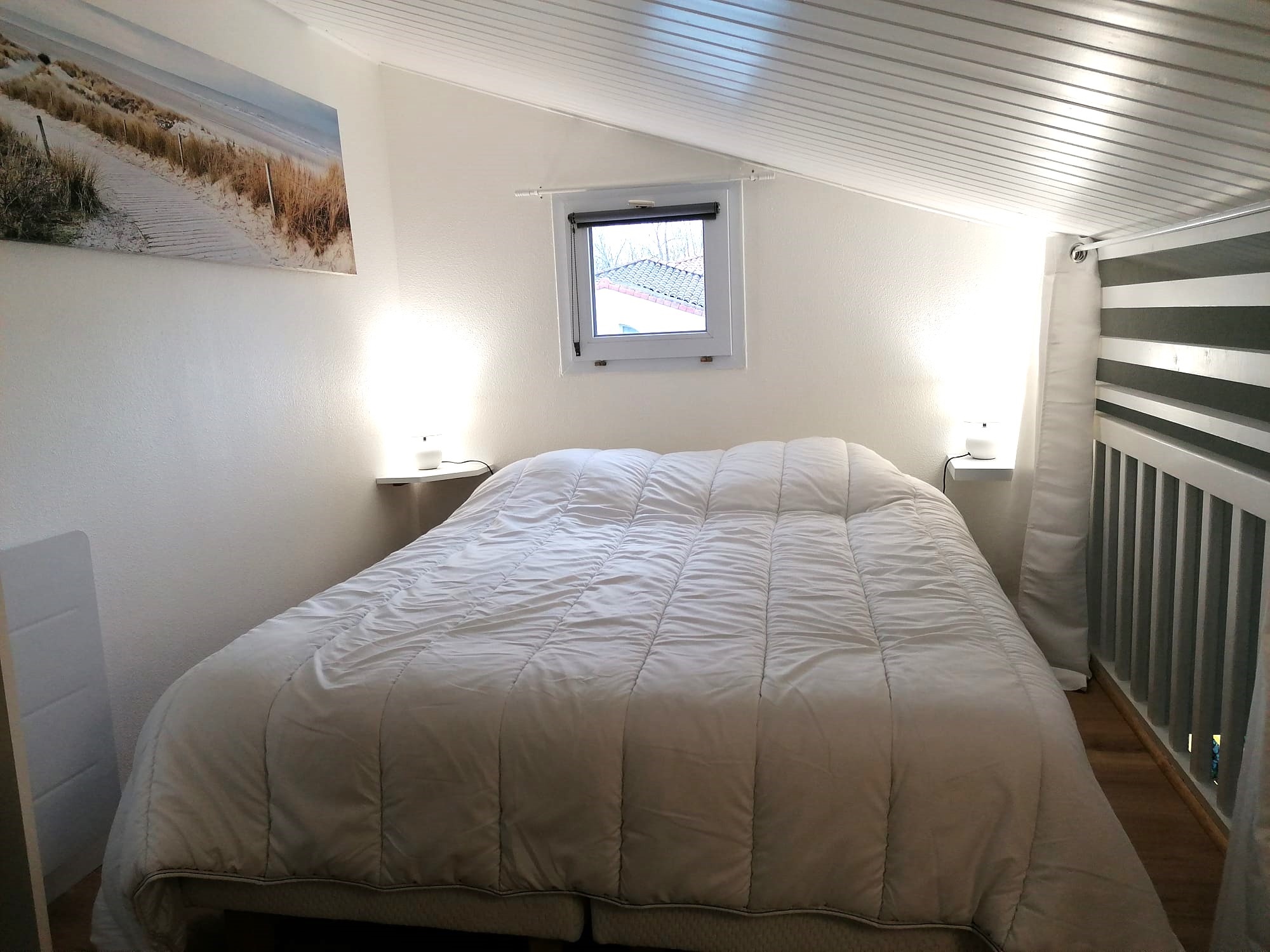 Petite maison récemment rénovée située à deux pas de la plage dans une résidence calme avec piscine collective chauffée (juin à sept )La maison vendéenne se compose au rez de chaussée, d'une cuisine équipée, un espace séjour avec canapé, TV et table à manger, d'une chambre avec lit double en 160, une salle de douche et un WC séparé. A l'étage en mezzanine : un lit double en 140 et un lit simple.