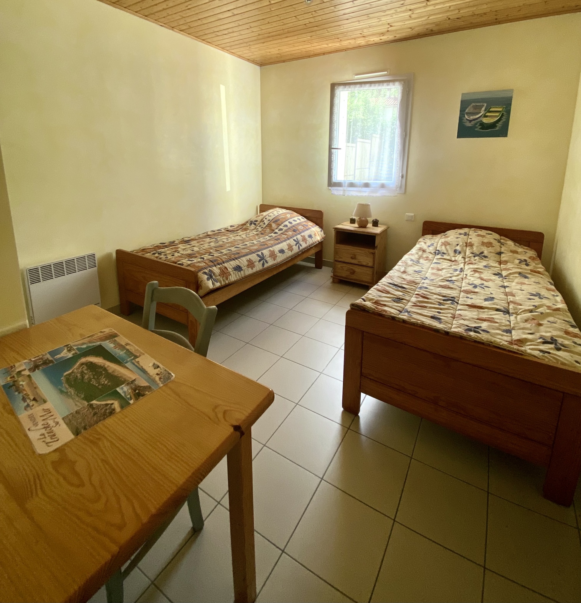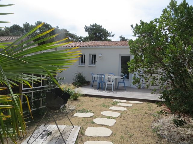 Maison individuelle récente et confortable avec jardin clôturé attenant à la forêt, rue du Phare -la Tranche sur Mer, Plage à 400 m Commerces à 1000 m. Elle est composée d'un séjour (téléviseur) avec canapé 2 places BZ, coin cuisine équipé (réfrigérateur-congélateur, table de cuisson vitrocéramique, four électrique, lave-vaisselle, hotte, micro-onde) 1 Chambre avec placard (1 Lit de 140), 1 Chambre avec placard (2 Lits de 90),salle d'eau avec douche et lavabo, W.C. indépendant, garage étroit avec lave linge. belle terrasse en bois avec salon de jardin - Possibilité de garer la voiture dans la descente du garage - Animaux non acceptés - Linge de maison et ménage de départ non compris. Possibilité d'y souscrire en option. Prévoir consommation électrique en sus hors saison d'été. Chèques vacances acceptés. Plan Prévision Risque Littoral : Zone Blanche