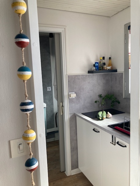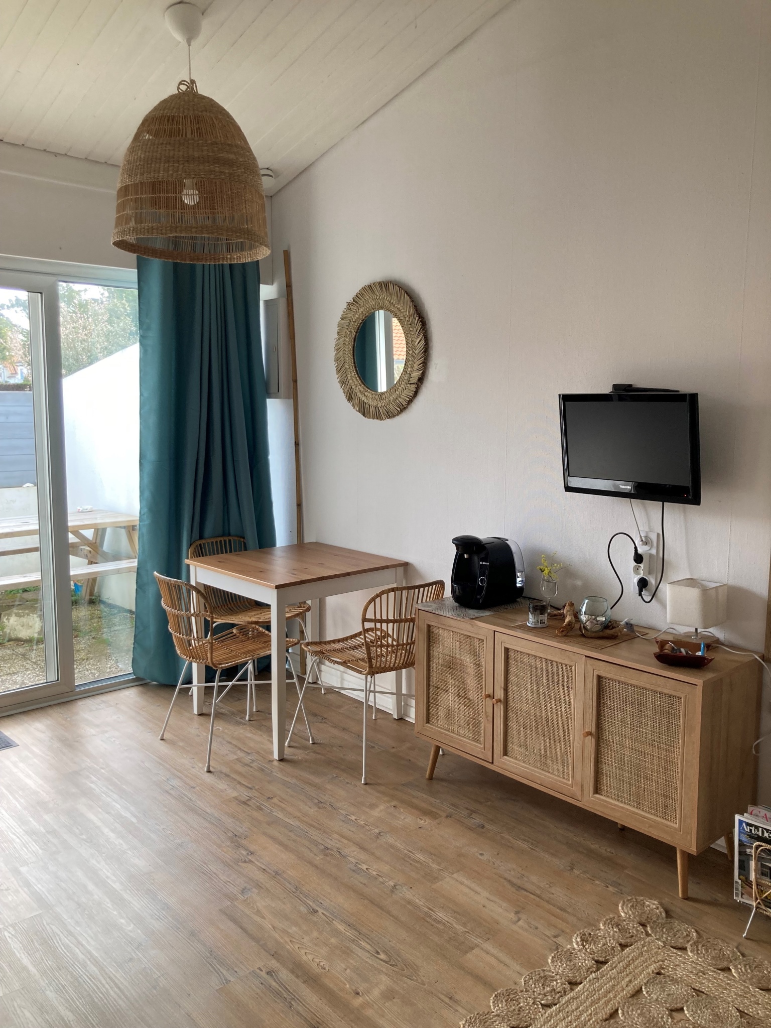 Le studio 'La Cabane' situé à 350m de la plage Flandres Dunkerque dans le secteur de la Grière.Récemment rénové, il se compose d'un séjour avec TV, d'un espace chambre avec lit en 140*200, d'une kitchenette avec plaque de cuisson à induction et une salle d'eau avec douche, lavabo, WC. Une courette de 14m2 avec mobilier de jardin, barbecue électrique et chiliennes. Ventilateur.