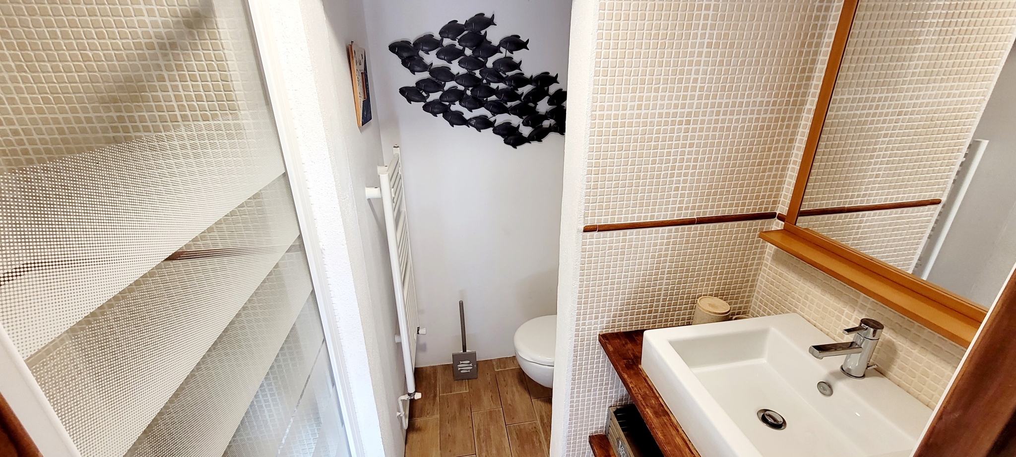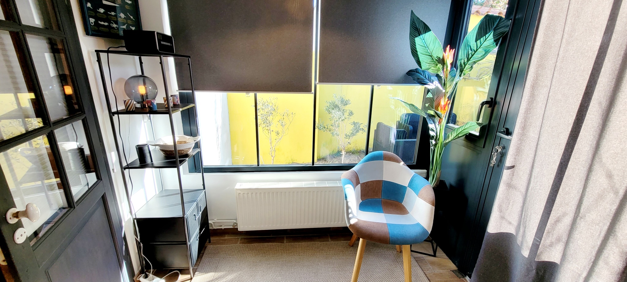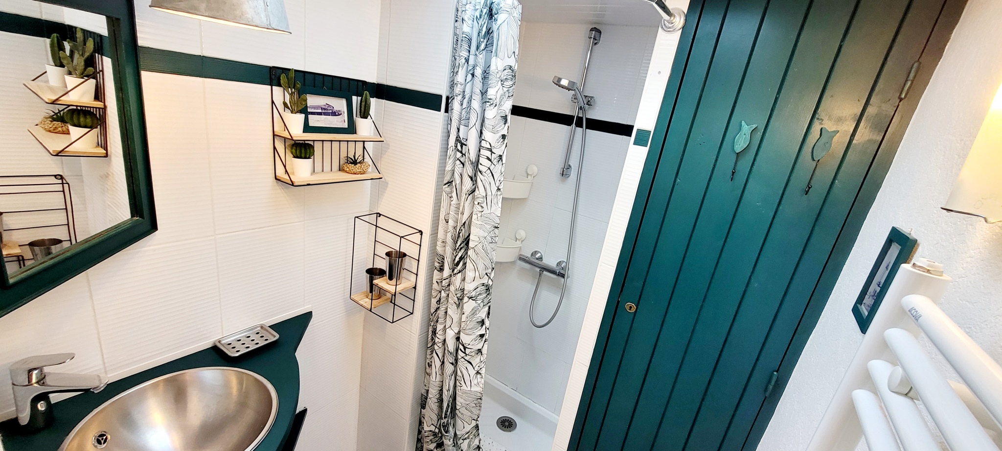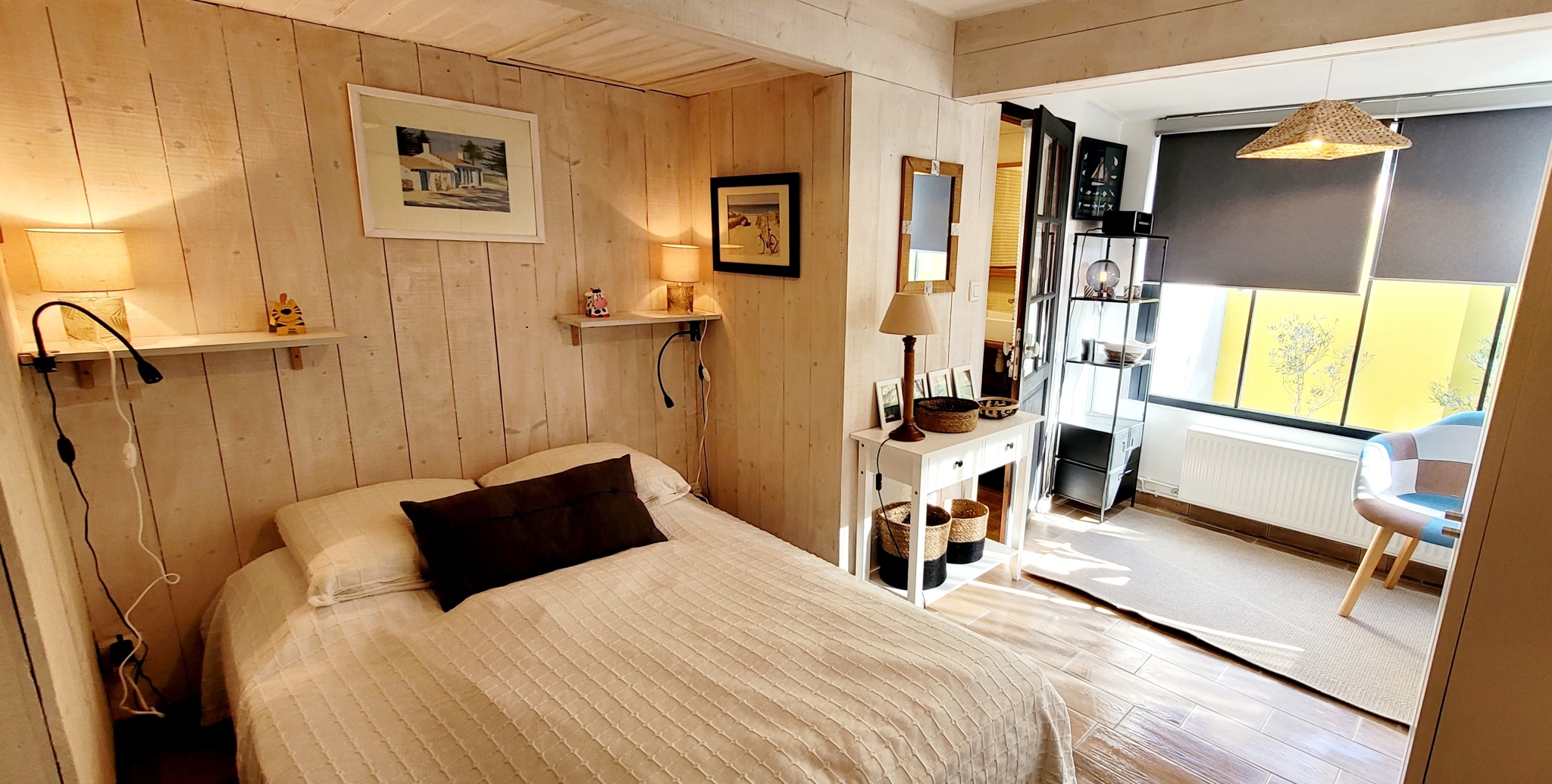 Deux espaces extérieurs pour profiter pleinement des beaux jours. Côté séjour, une grande terrasse avec espace repas, salon de jardin, transats, barbecue gaz et parasol. Côté chambre, un charmant espace lounge pour boire un verre en toute intimité ou bouquiner au calme.