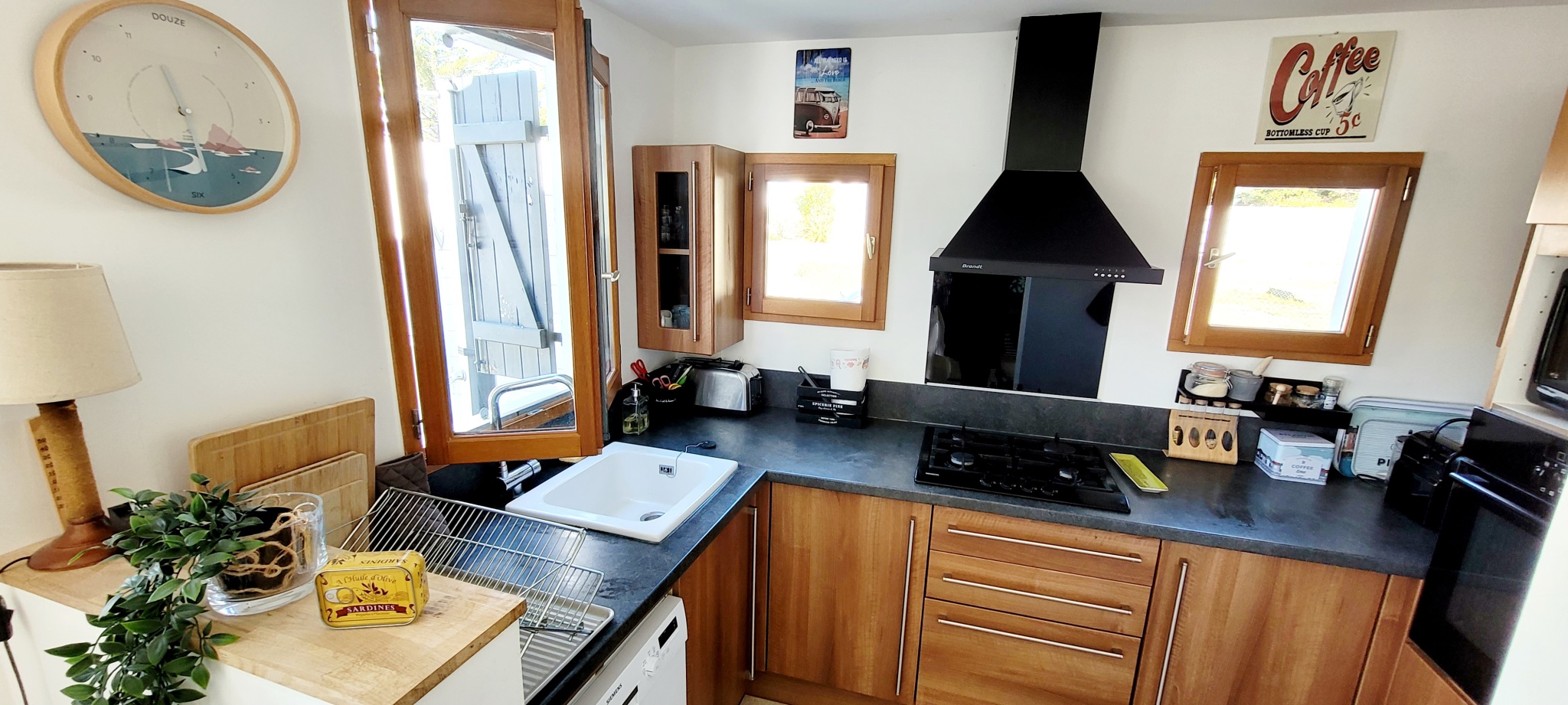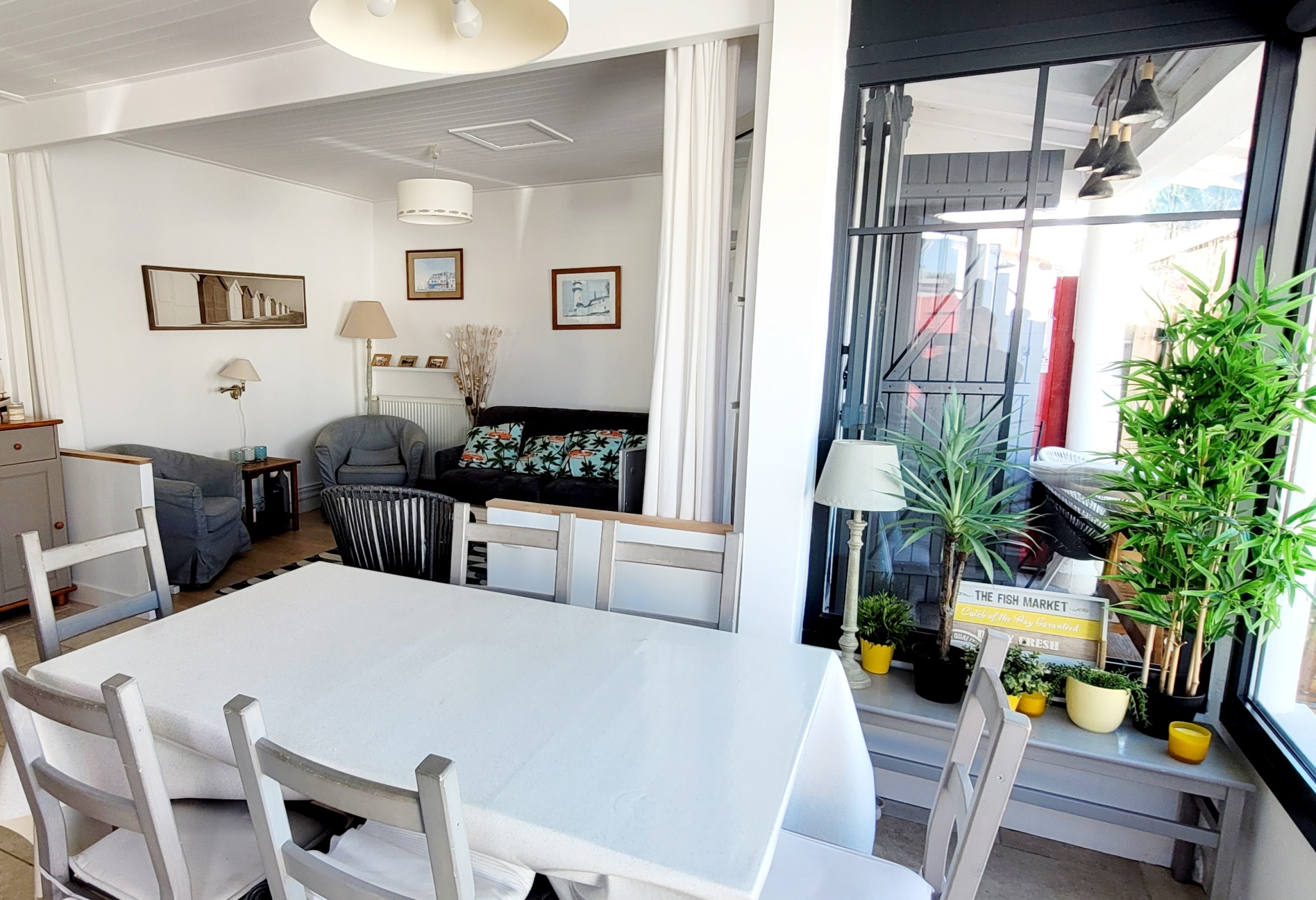 Jolie maison de pays décorée style ' bord de mer ' à 300m de la plage et 1.5km des commerces pour un séjour tout en détente !Elle se compose d'une entrée, un séjour / salon avec TV et WIFI, une cuisine équipée (4 feux gaz, four, micro ondes, frigo congélateur, lave-vaisselle, machine à café Nespresso), trois chambres, deux salles d'eau et deux WC.