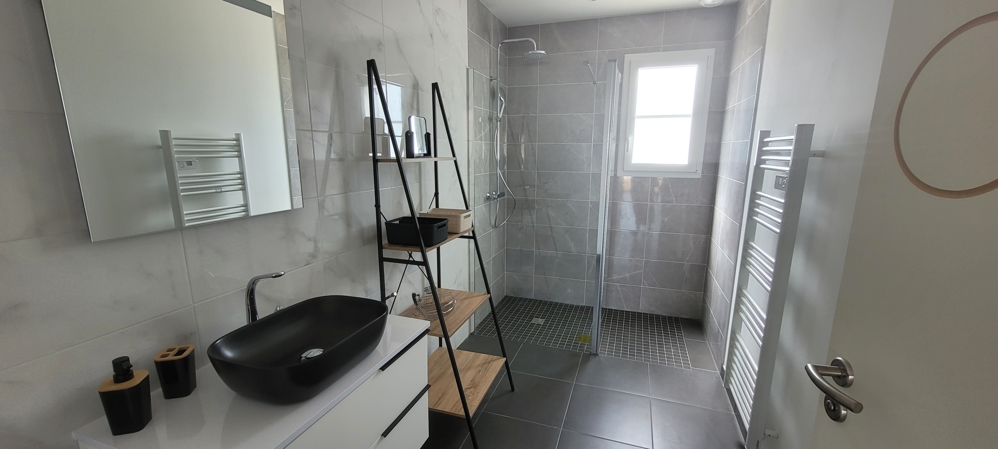 Cette maison très confortable et bien équipée se compose d'une entrée, d'une cuisine équipée américaine, d'un salon TV, d'une salle d'eau avec douche italienne, de deux chambres (chacune un lit double en 140cm) et un WC séparé.