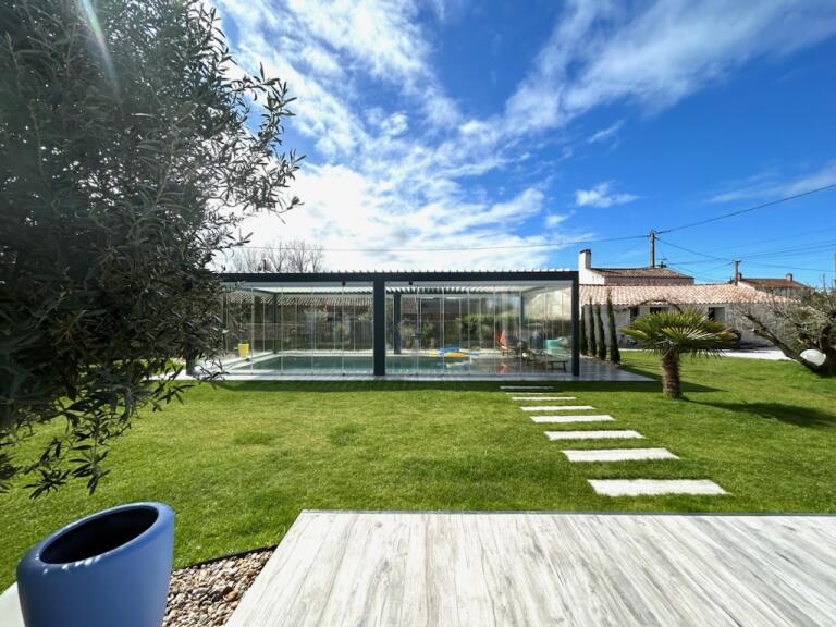 Demeure de caractère avec piscine couverte et chauffée située à 4 km des plages . La maison du photographe sera votre havre de paix pour les vacances, mêlant art et confort dans un petit coin de paradis . Elle se compose au rez de chaussée, d'un salon avec TV et internet, une salle à manger, une cuisine équipée (plaques induction, réfrigérateur américain - congélateur, cafetière nespresso, four, micro-onde), une buanderie, une suite familiale avec TV, douche et WC séparés (baignoire non utilisable), deux chambres, une salle d'eau et un second WC séparé. A l'étage, une chambre enfants avec lit tiroir pour 2 couchages simple ou 1 couchage double. Un jardin aménagé qui aspire à la détente avec une ambiance méditerranéenne, un patio entouré de verdure pour les repas ombragés, des transats pour se reposer au soleil, une belle piscine couverte et chauffée pour se relaxer. Le plus : Les services sur mesure, robot automatique pour la tonte de la pelouse, piscine entièrement vitrée pour une fermeture sécurisée.Linge de lit, linge de toilette et ménage en option