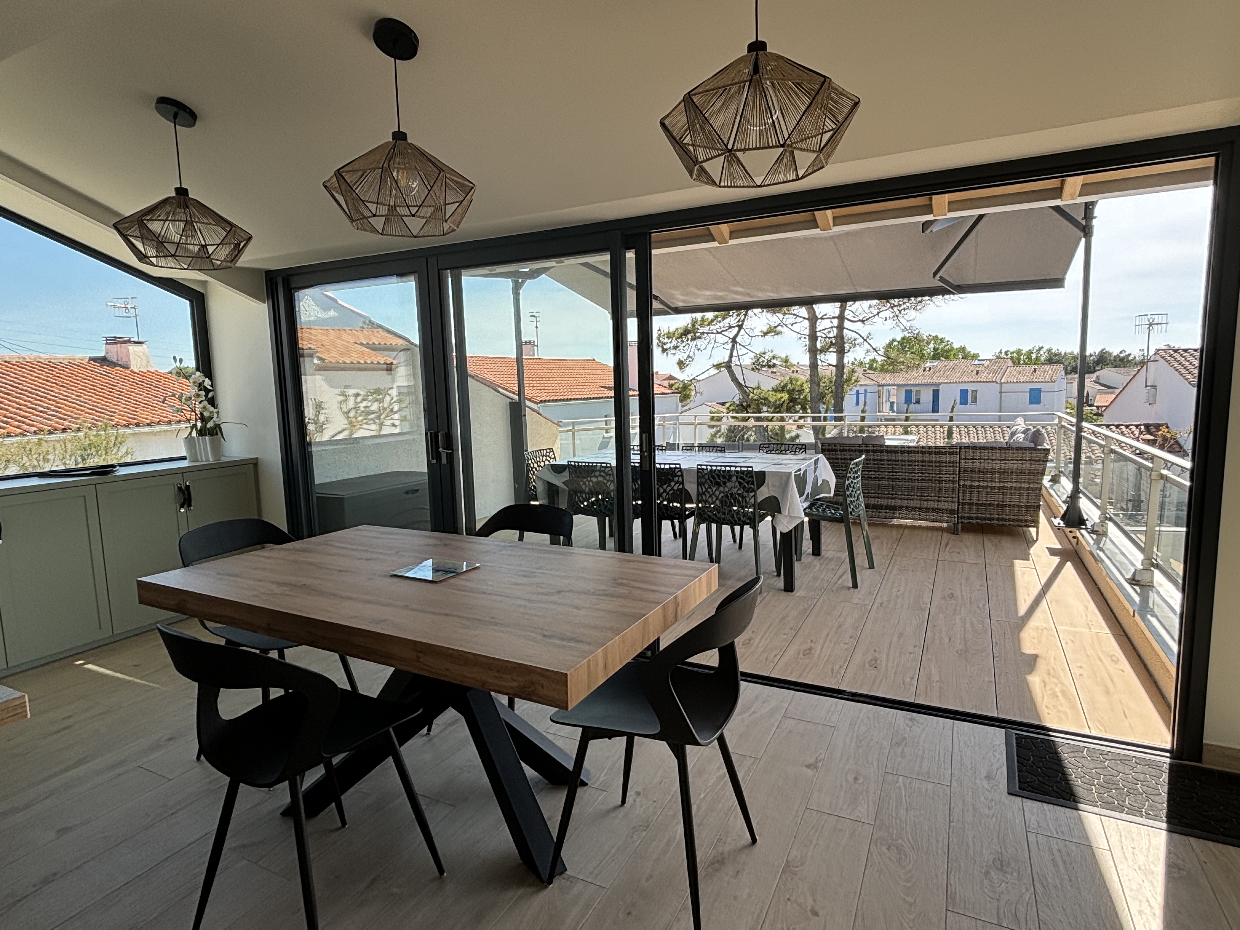Spacieuse et avec tout le confort moderne, cette jolie maison sera l'endroit idéal pour vos vacances.Vous apprécierez particulièrement ses beaux volumes avec hauteur sous plafonds et la terrasse surplombant le jardin.