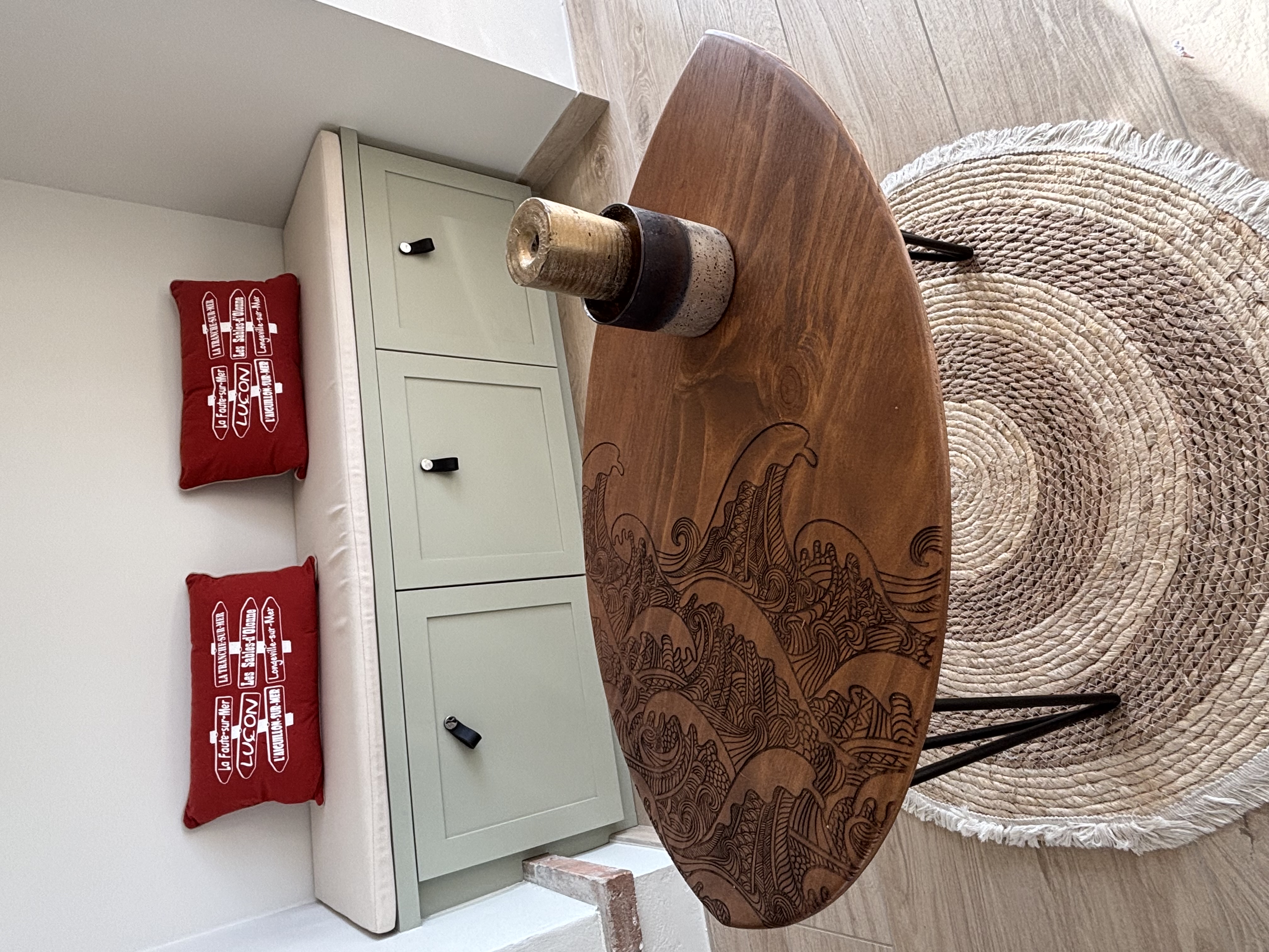 Place de stationnement dans la propriété et garage à disposition pour les vélos et les planches.