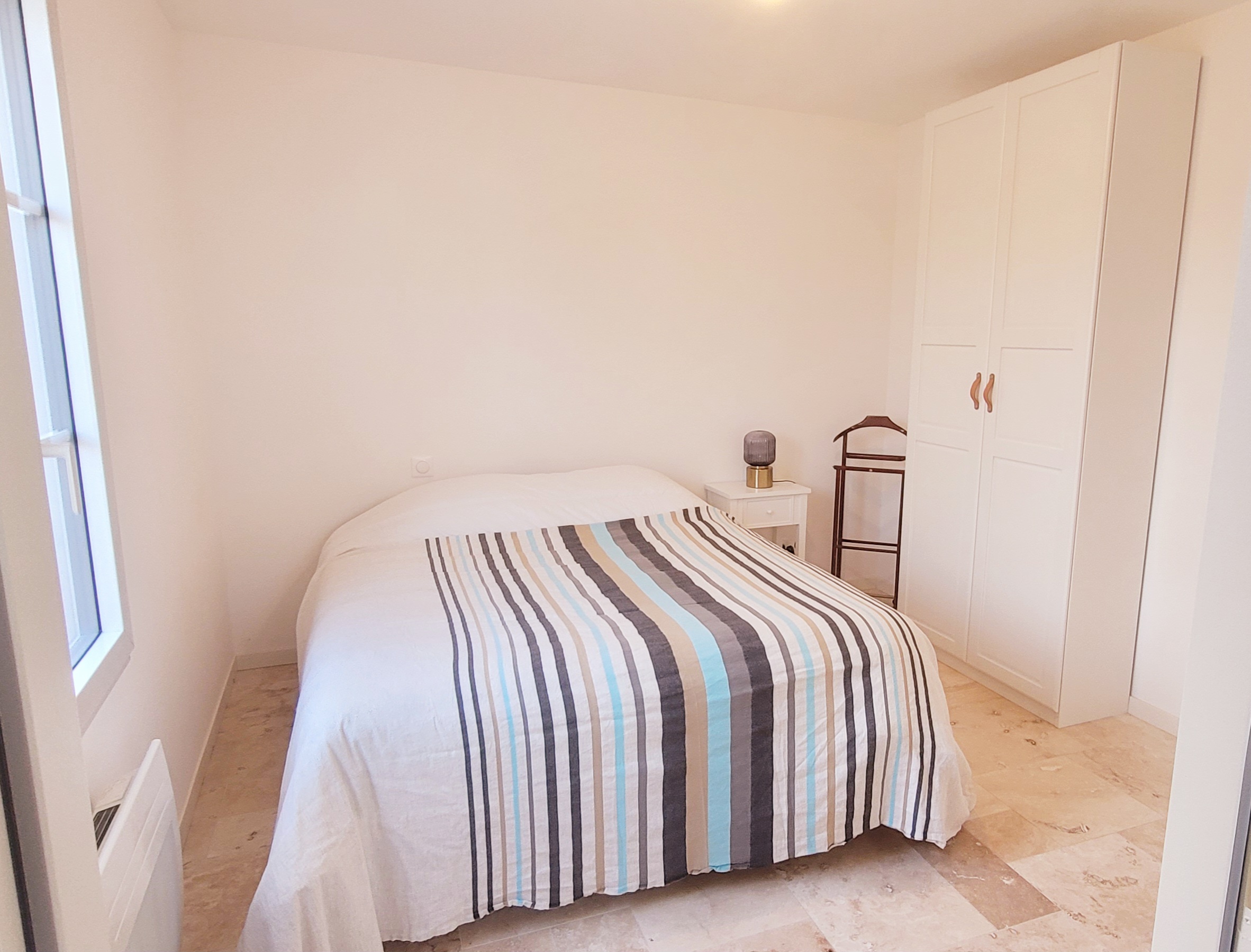 d'une pièce de vie salle à manger / salon TV (wifi - fibre) avec cuisine ouverte équipée et aménagée, une chambre lit 160 avec salle d'eau) et d'un WC séparé.
