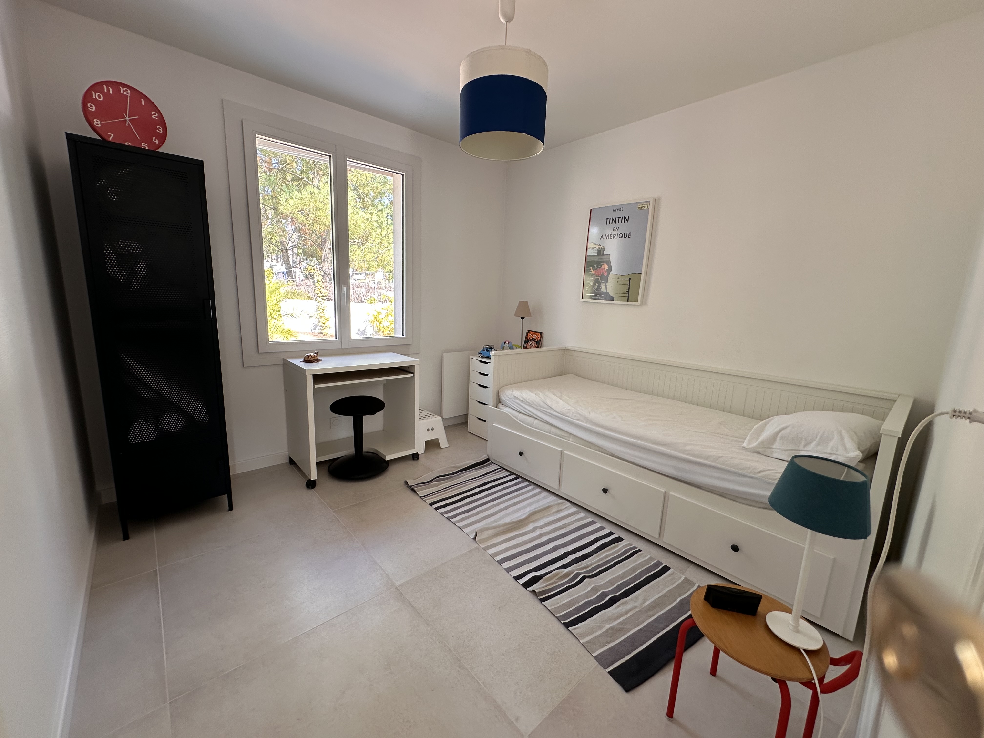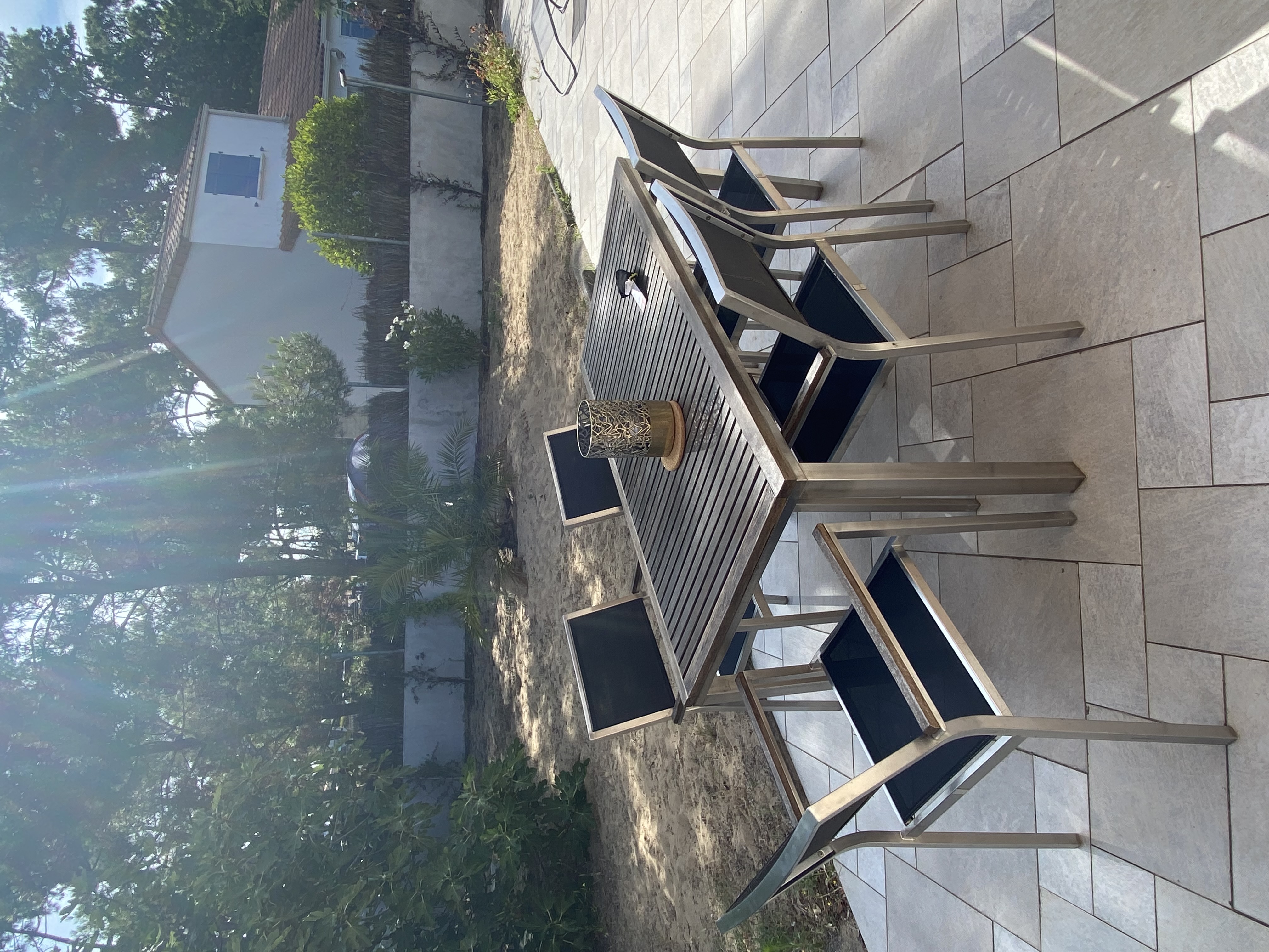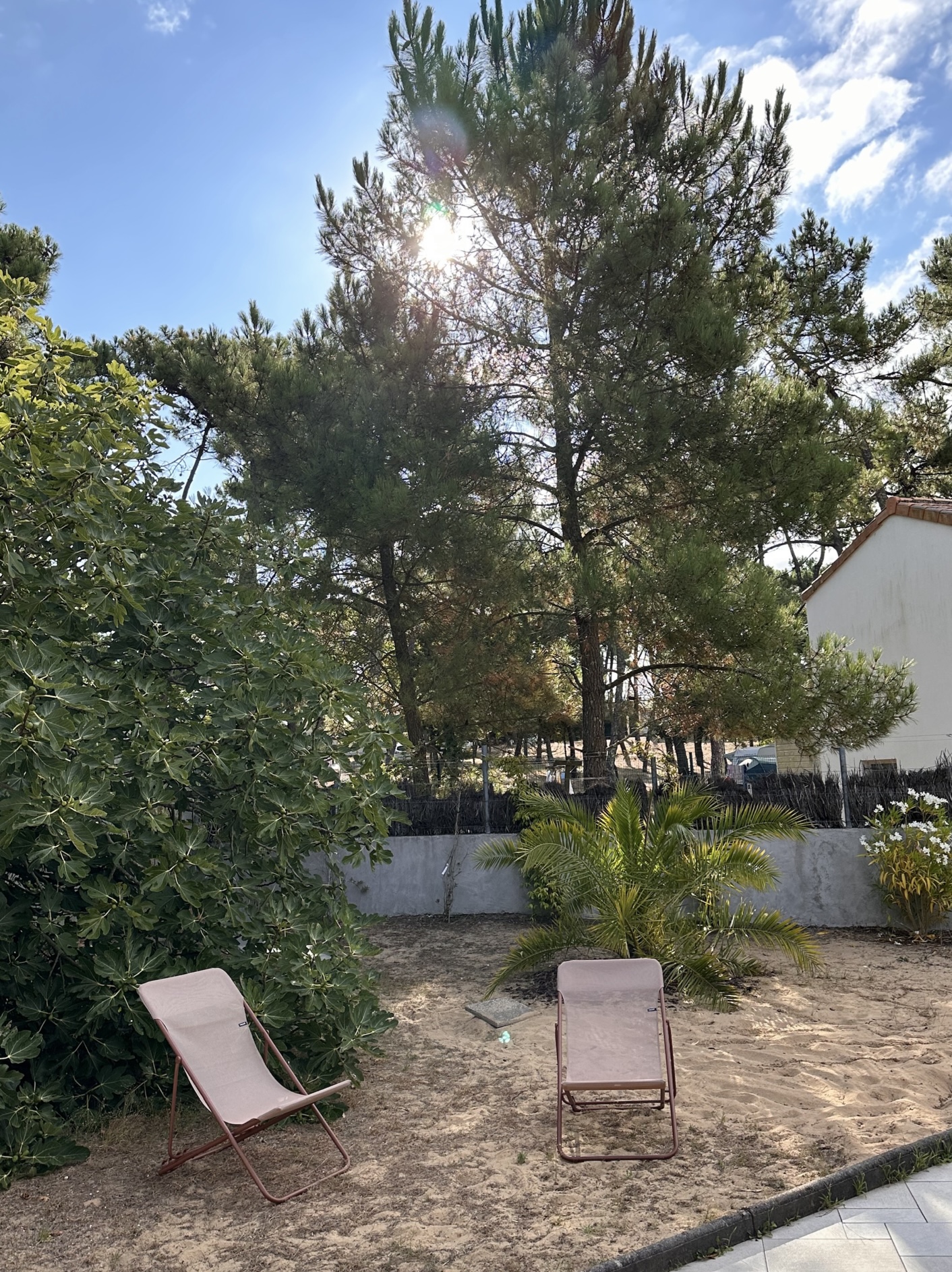 Un jardin cloturé et 2 terrasses permettent de profiter du soleil toute la journée ou de prolonger le soir apéros/dîner sous les pins.