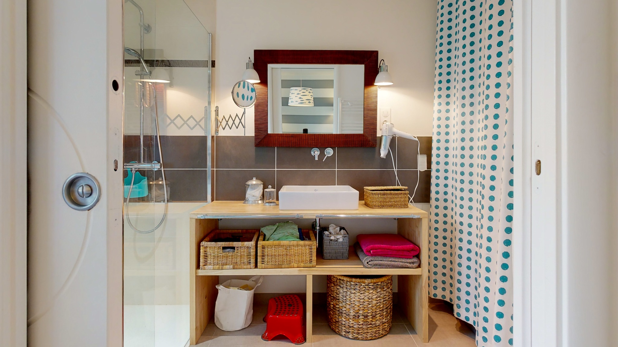 Au rez-de-chaussée, une suite familiale avec salle d'eau, WC séparé, une chambre double avec terrasse .