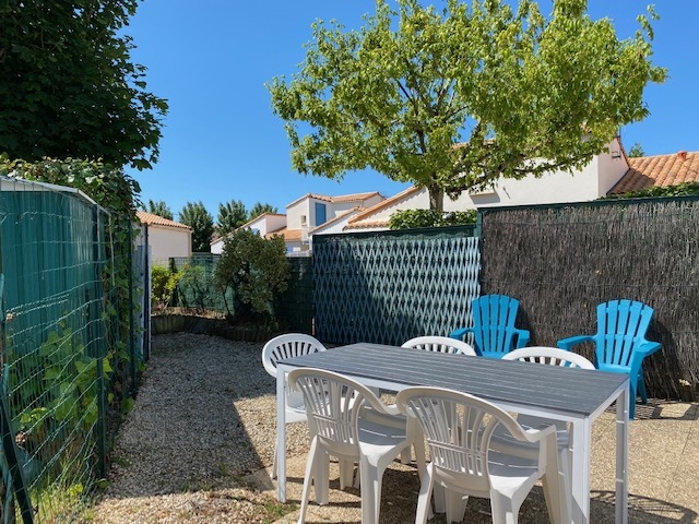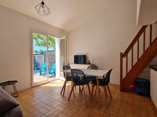 Petite maison individuelle 'les villas de la plage', au calme, jardinet clôturé au sud, idéalement située, près du centre ville, plage à 500 m, commerces à 500 m, pistes cyclables, navettes gratuites, cente aquatique, skate park, école sport nautique à 500m.Séjour avec téléviseur, coin cuisine (lave linge, lave vaisselle, plaques cuisson induction, four/micro-ondes), une chambre cabine avec 1 lit de 80 communiquant avec la salle d’eau, 1 petite chambre (1 lit de 140) en mezzanine ouverte sur séjour et un lit de 80 sur le pallier à l’étage, terrasse avec salon de jardin, barbecue.