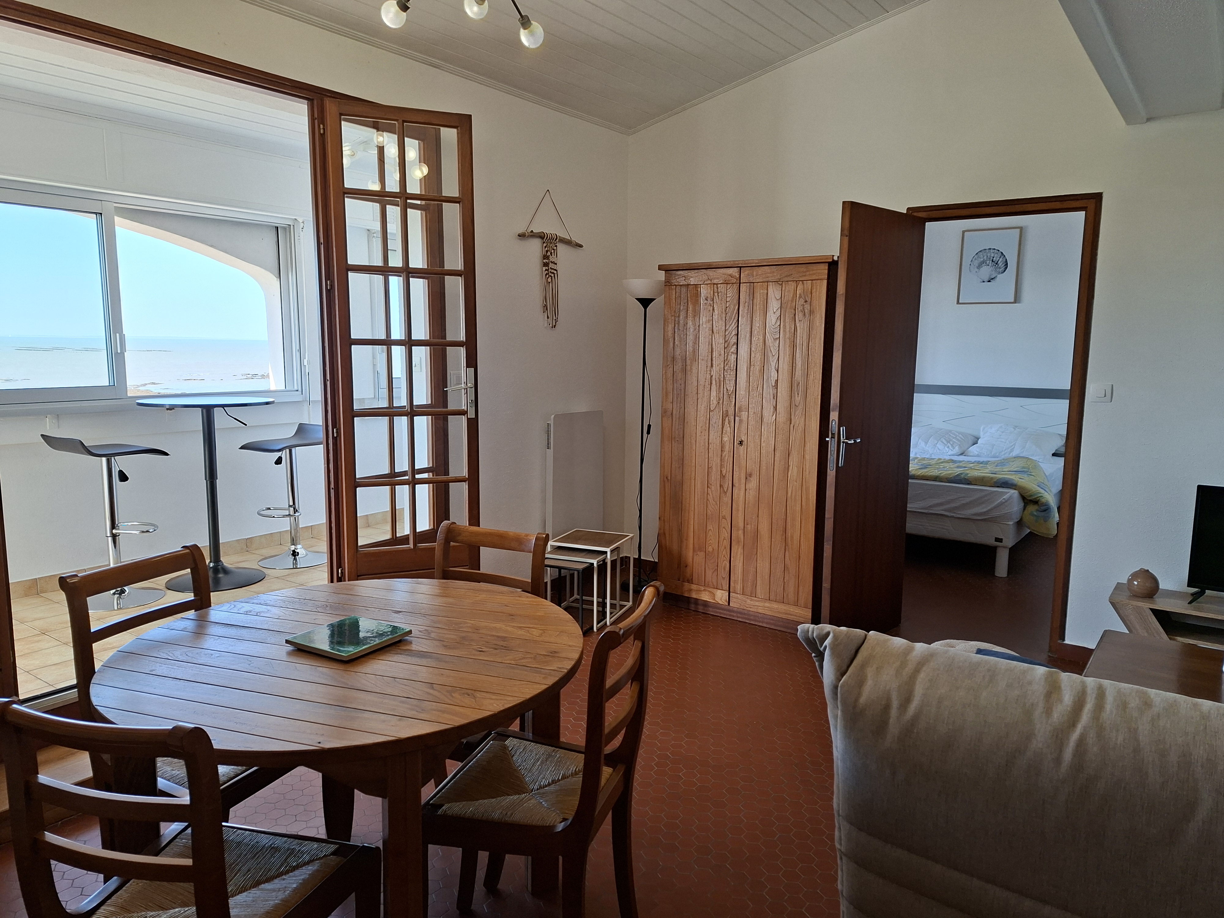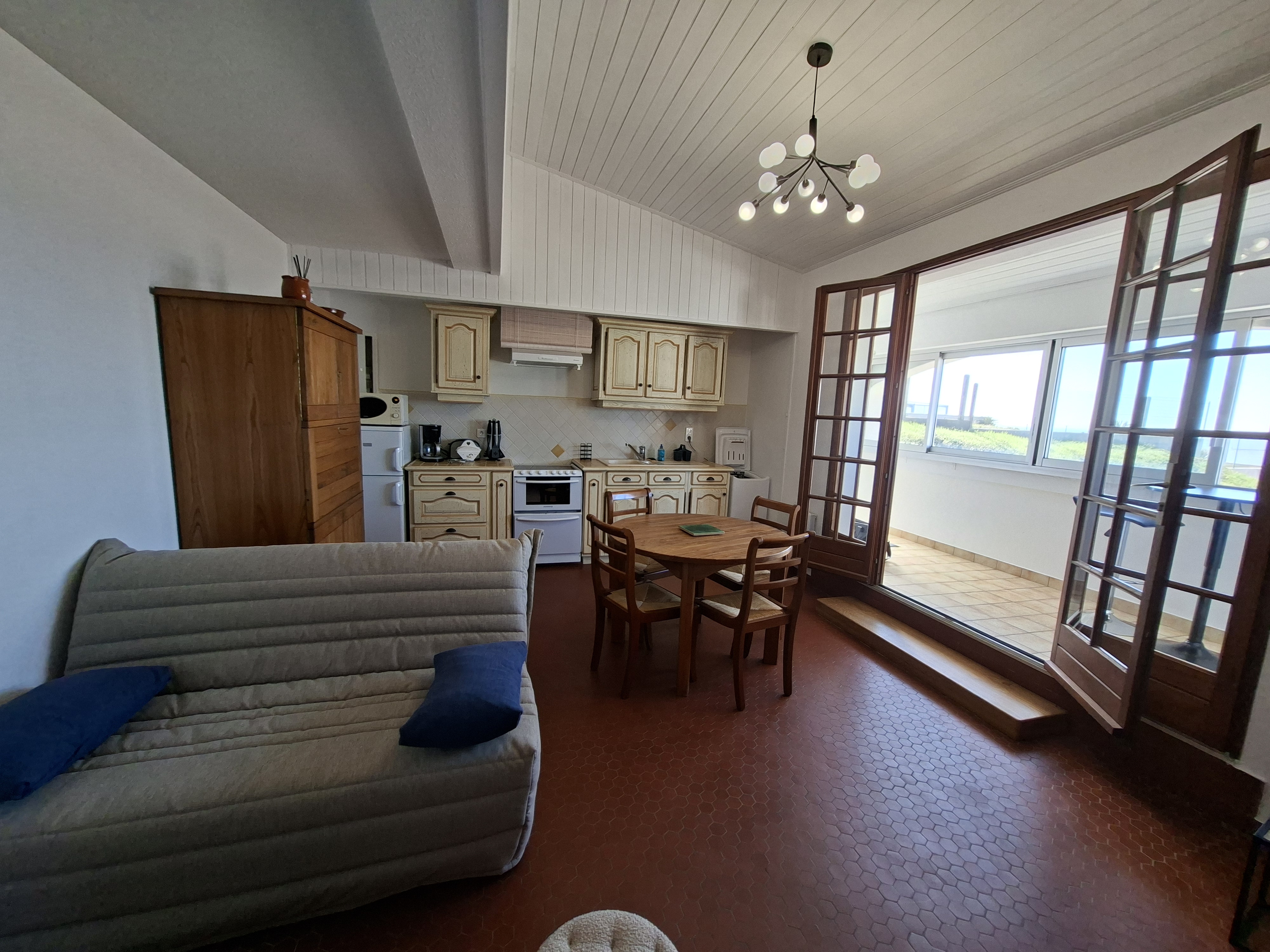 Vue mer exceptionnelle, plage de la Grière,Composée d'un séjour/salon avec coin cuisine équipé, ouvrant sur une belle véranda surplombant l'océan, une chambre avec vue mer, un canapé convertible 2 places, TV écran plat, placard, Une salle d'eau avec douche, WC