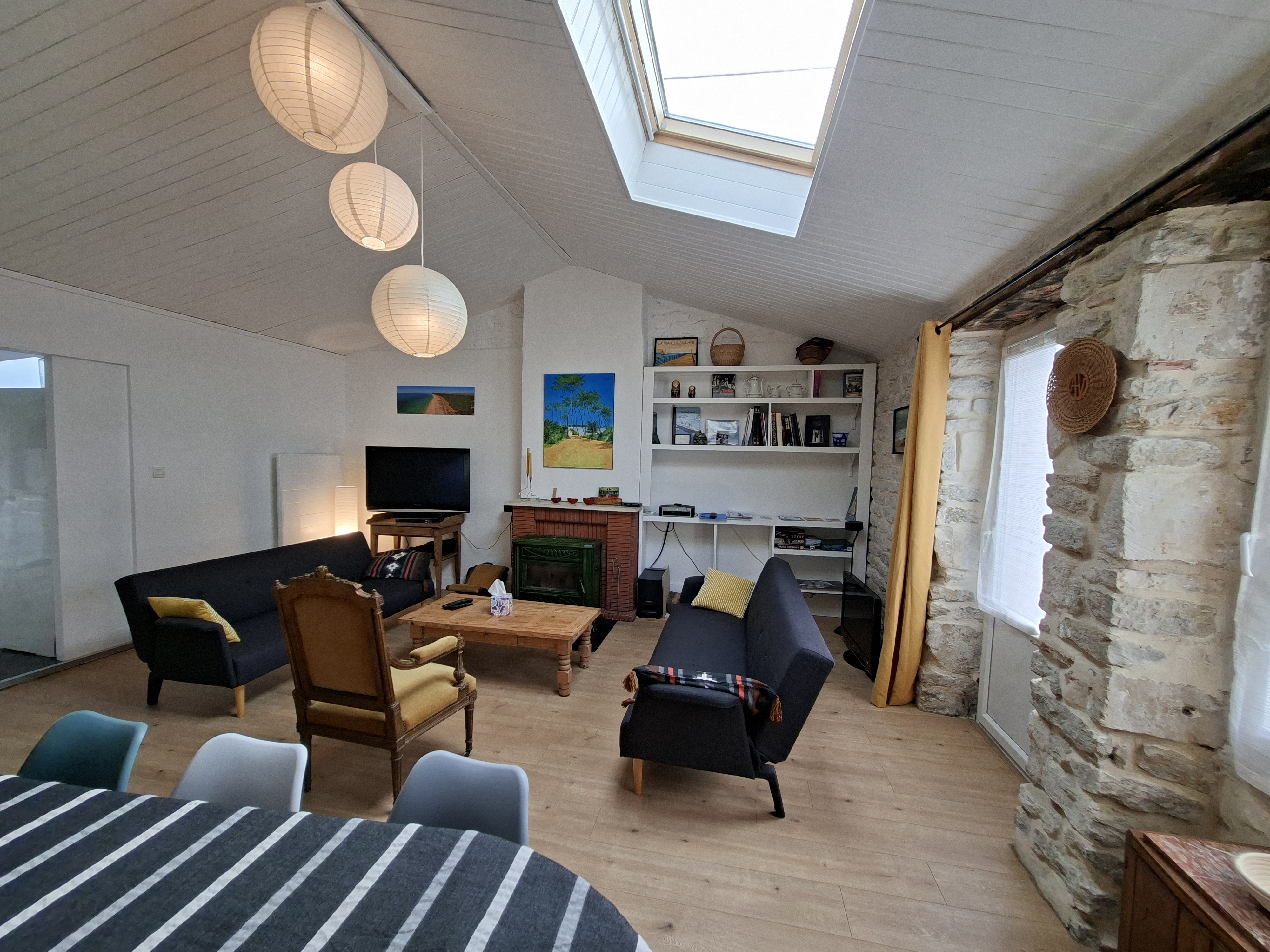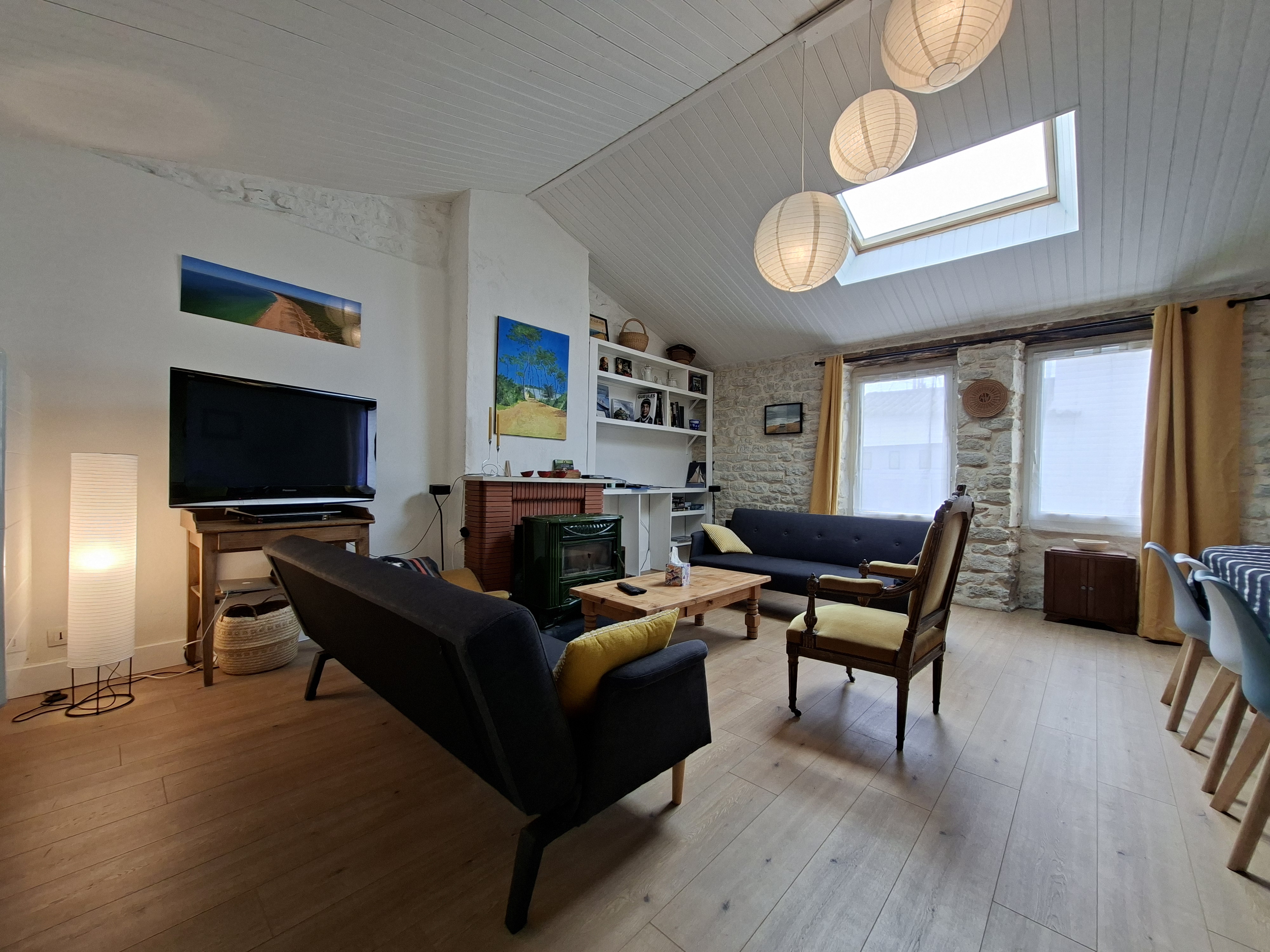 Au cœur du village de la Terrière, à 1500 m de sa magnifique plage, cette maison de charme rénovée avec goût se compose: d'un beau séjour, salon/TV, une cuisine donnant sur le jardin. une petite chambre avec 2 lits gigognes pouvant se transformer en lit 160, une chambre avec lit en 140 et rangements et accessible par l'extérieur une chambre avec lit en 160 et rangements, une salle d'eau, un WC indépendant. Un joli jardin calme sans vis à vis pour se détendre.Un cabanon dans le jardin pour vélos ou planche de surf.