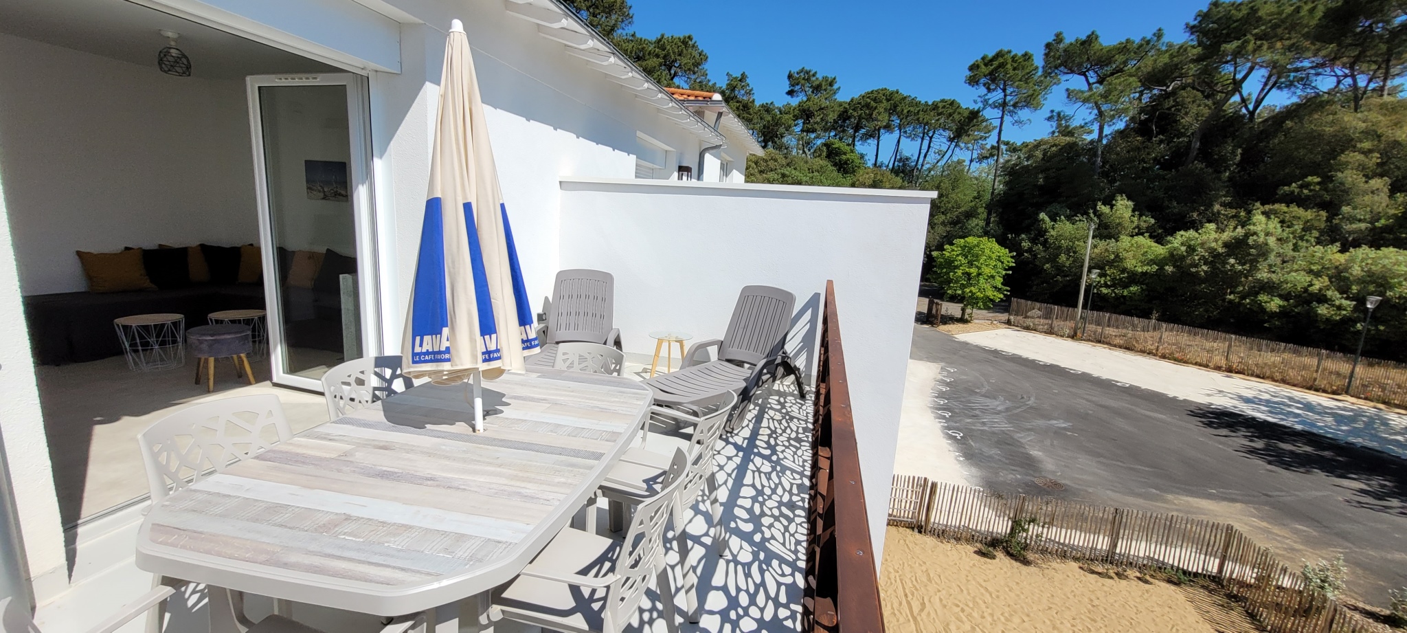 Cet appartement, situé dans le domaine de la Savinière en pleine forêt et à 1500 m de la plages vous permettra de passer un séjour relaxant. Accès à la piscine collective Juillet/Août.Idéalement situé au pied de la piste cyclable qui mène d'un côté à la plage et de l'autre au centre-ville.