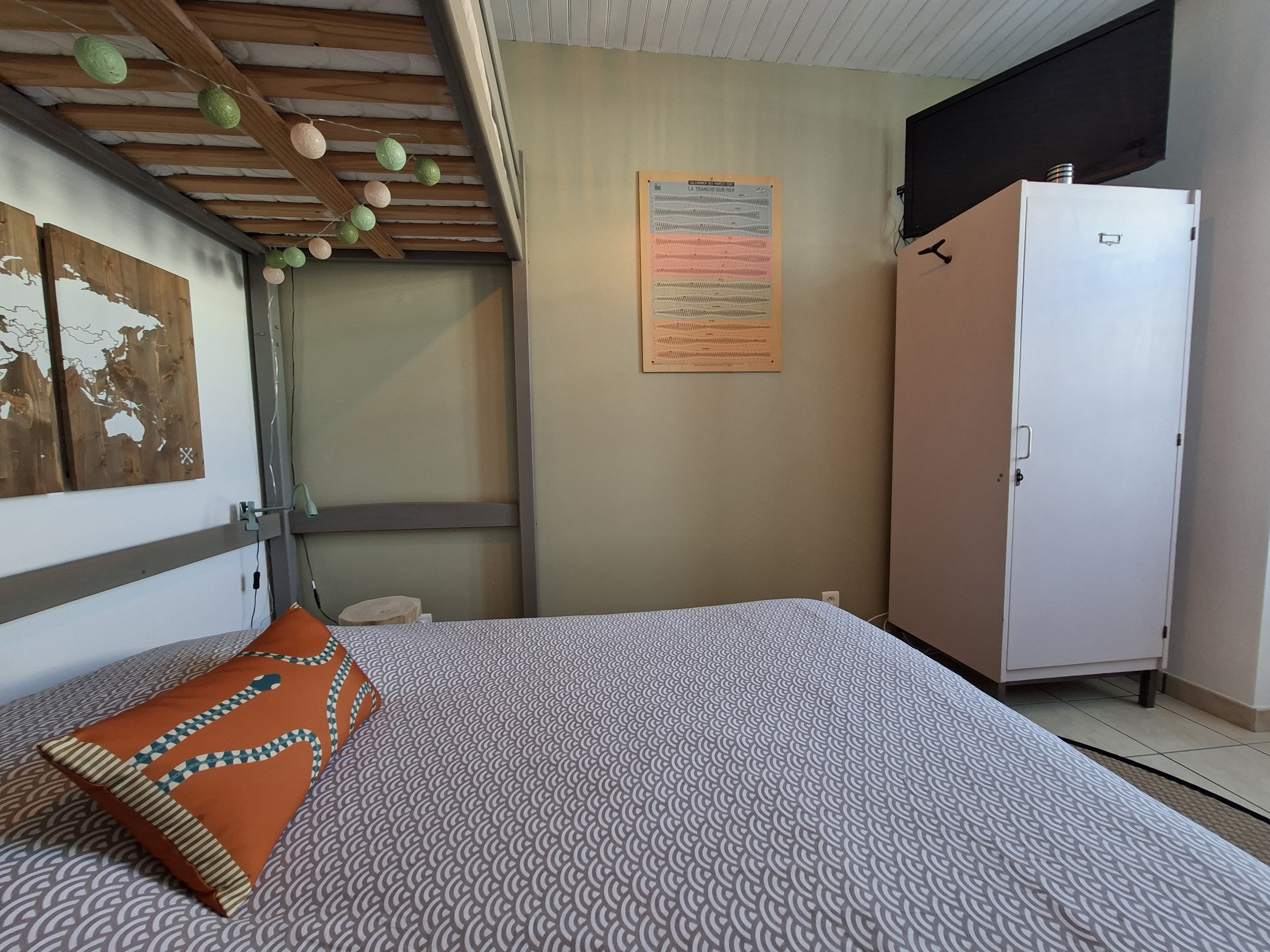 Elle dispose d' un espace de vie chaleureux et fonctionnel avec canapé, TV et WIFI, d'une cuisine équipée, de deux chambres, salle d'eau, WC séparé et d'une jolie terrasse extérieure à l'abri des regards pour profiter des belles journées d'été.