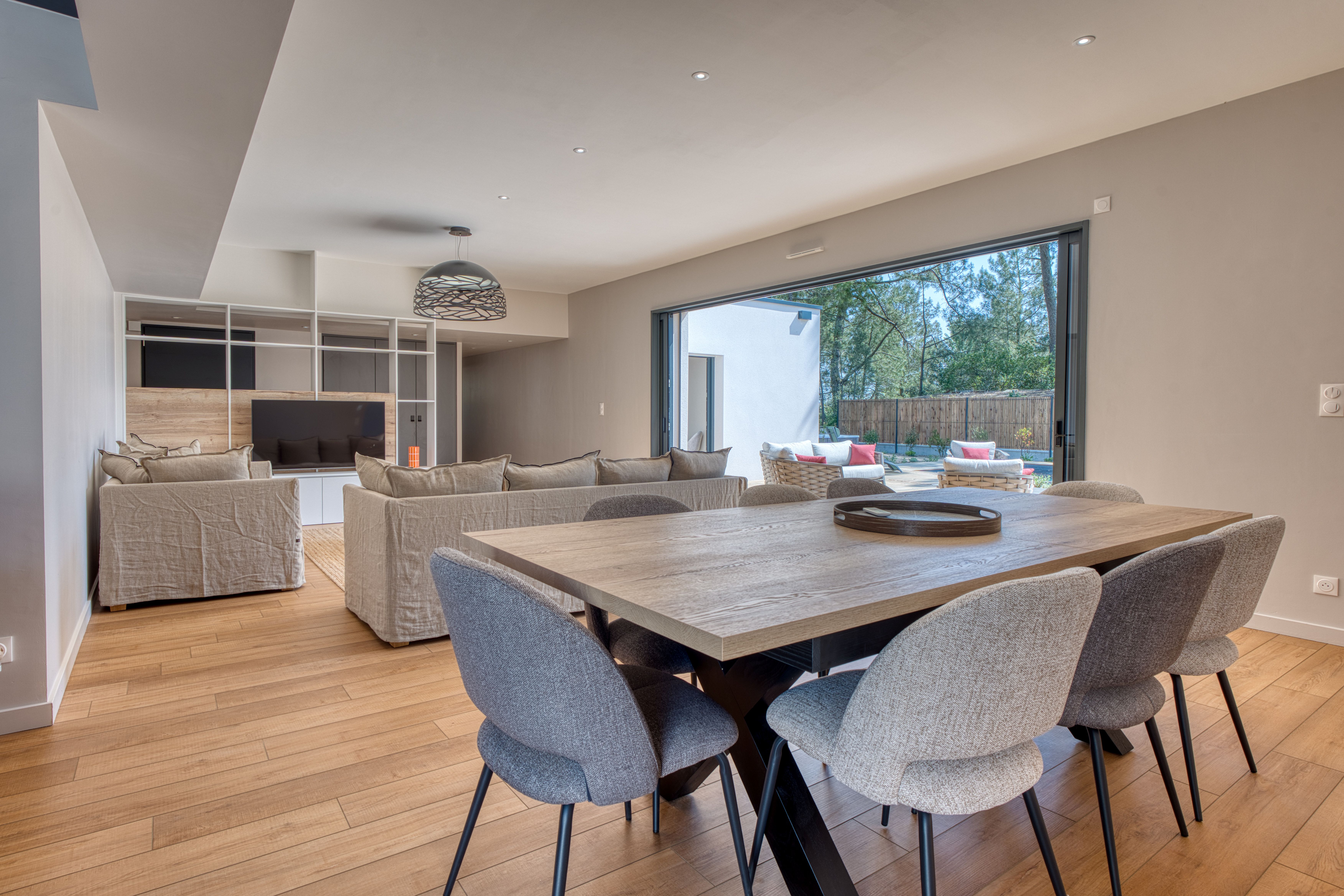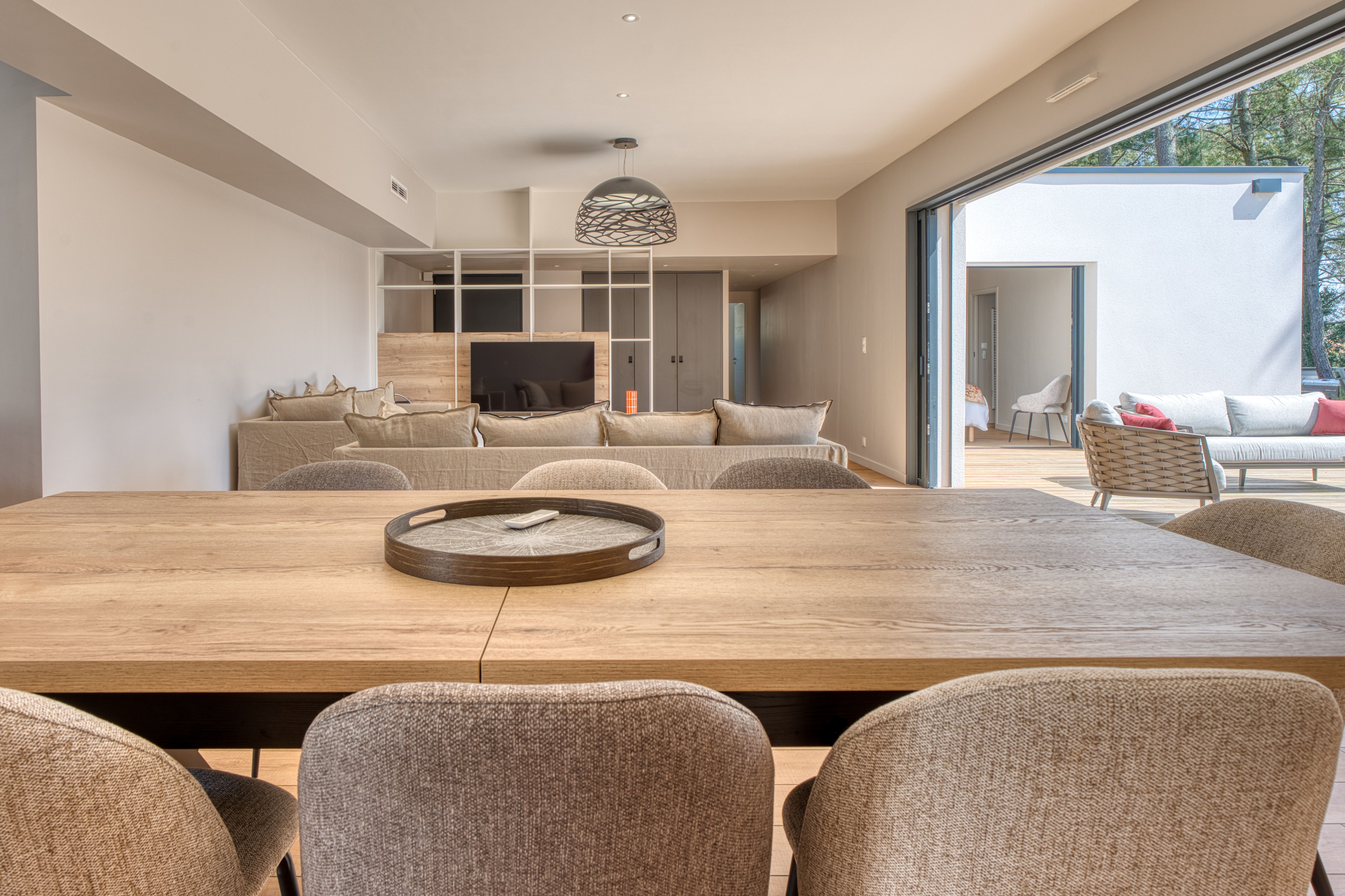 Idéale pour des vacances en famille, cette belle villa avec piscine et SPA, offre un cadre calme et sécurisé, entouré de nature. Spacieuse et lumineuse, elle permet à chacun de profiter de moments de partage tout en préservant son confort.La villa de plain pied se compose d'une entrée, une vaste pièce de vie, une cuisine aménagée et équipée avec îlot central, 5 chambres, 5 salles d'eau, de nombreuses terrasses pour profiter de l'extérieur au calme ou au bord de la piscine.